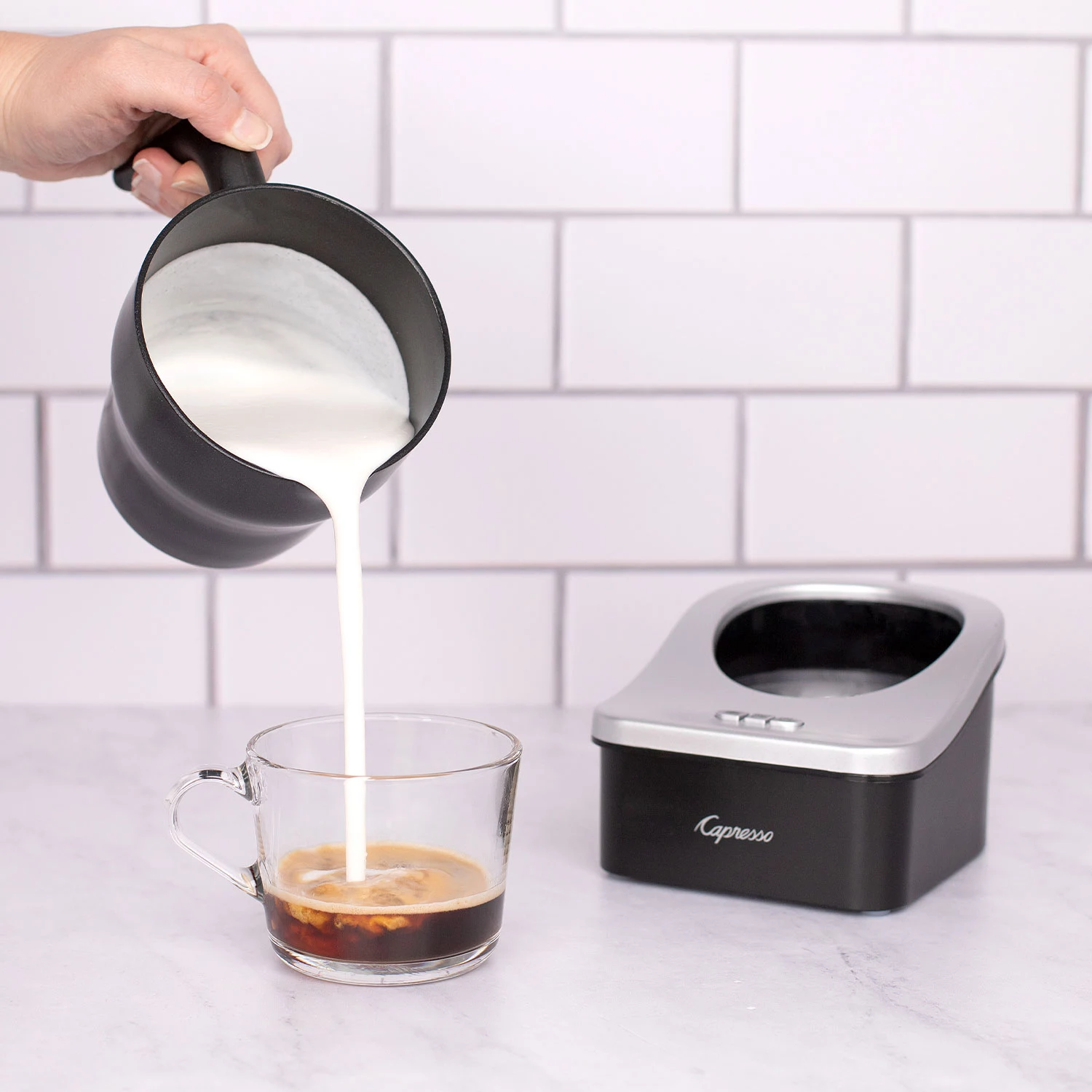 Capresso Froth Pro Milk Frother for Cappuccino. Espresso. Latte and Hot Chocolate. 7″ x 5″ x 6″. Black/Matte Silver