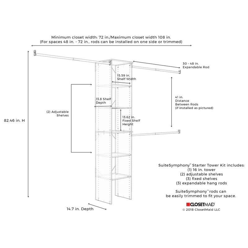 ClosetMaid 1951140 SuiteSymphony 16-Inch Closet Organizer with Shelves. Natural Gray