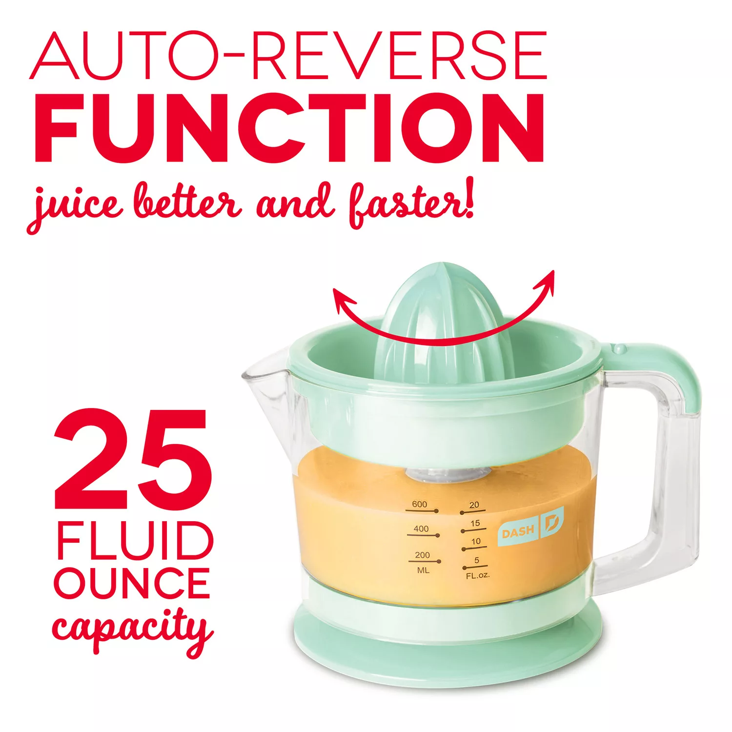Dash Citrus Juicer Extractor: Compact Juicer for Healthy Juice. Oranges. Lemons. Limes. Grapefruit & other Citrus Fruit with Easy Pour Spout + 32 oz Pitcher - Aqua