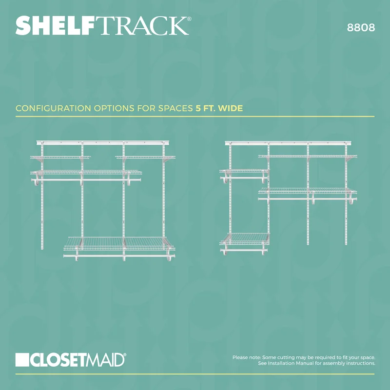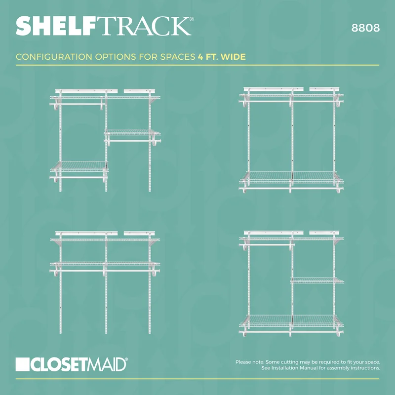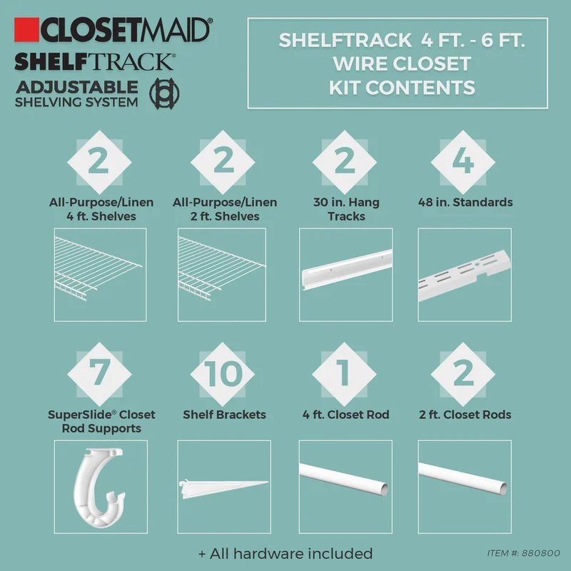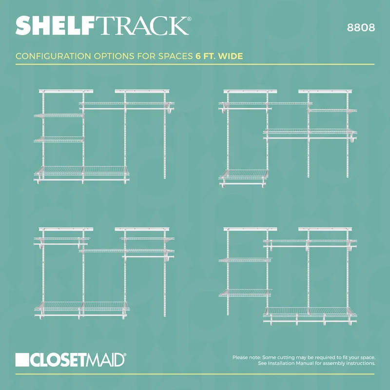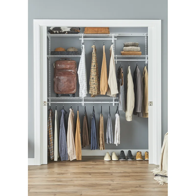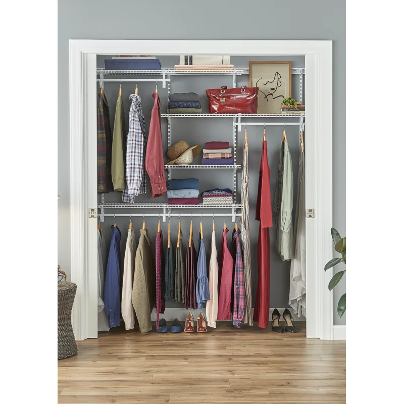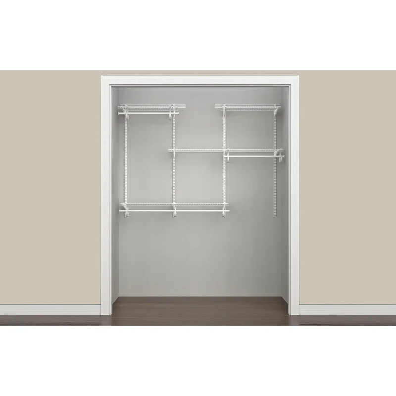 ClosetMaid 8808 ShelfTrack Wire Closet Organizer System. Adjustable from 4 to 6 Ft.. With Shelves. Clothes Rods. Hardware. Durable Steel. White