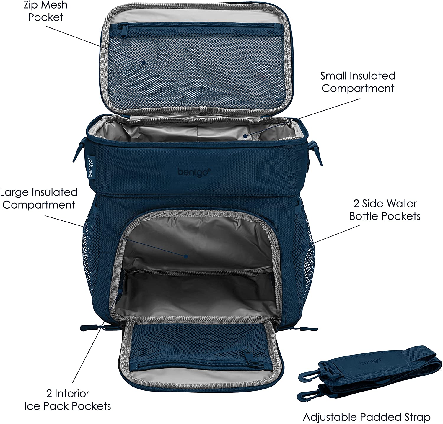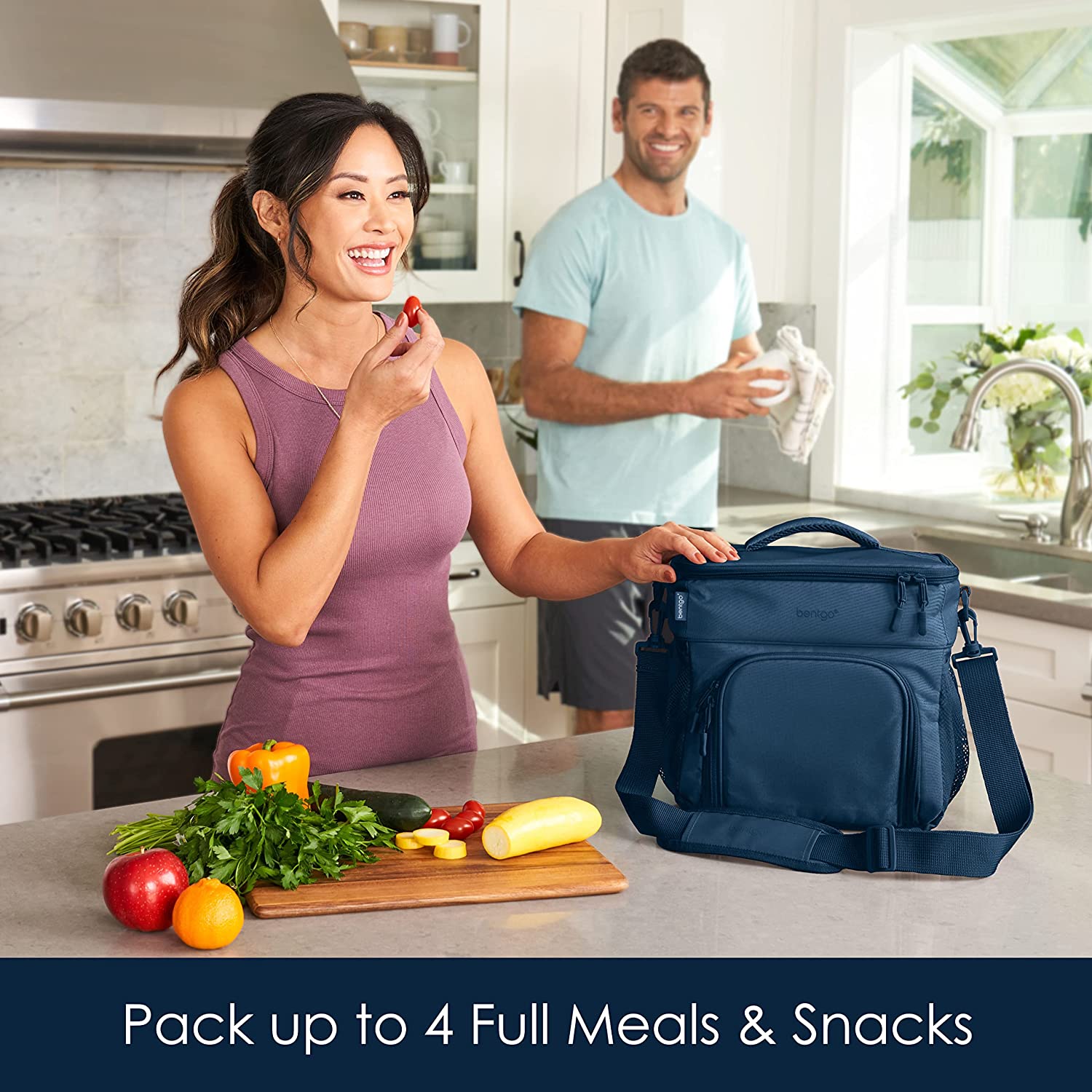 Bentgo® Prep Deluxe Multimeal Bag - Premium Insulation up to 8 Hrs with Water-Resistant Exterior & Interior. Extra Large Lunch Bag Holds 4 Meals & Snacks - Great for All Day Meal Prep (Navy Blue)