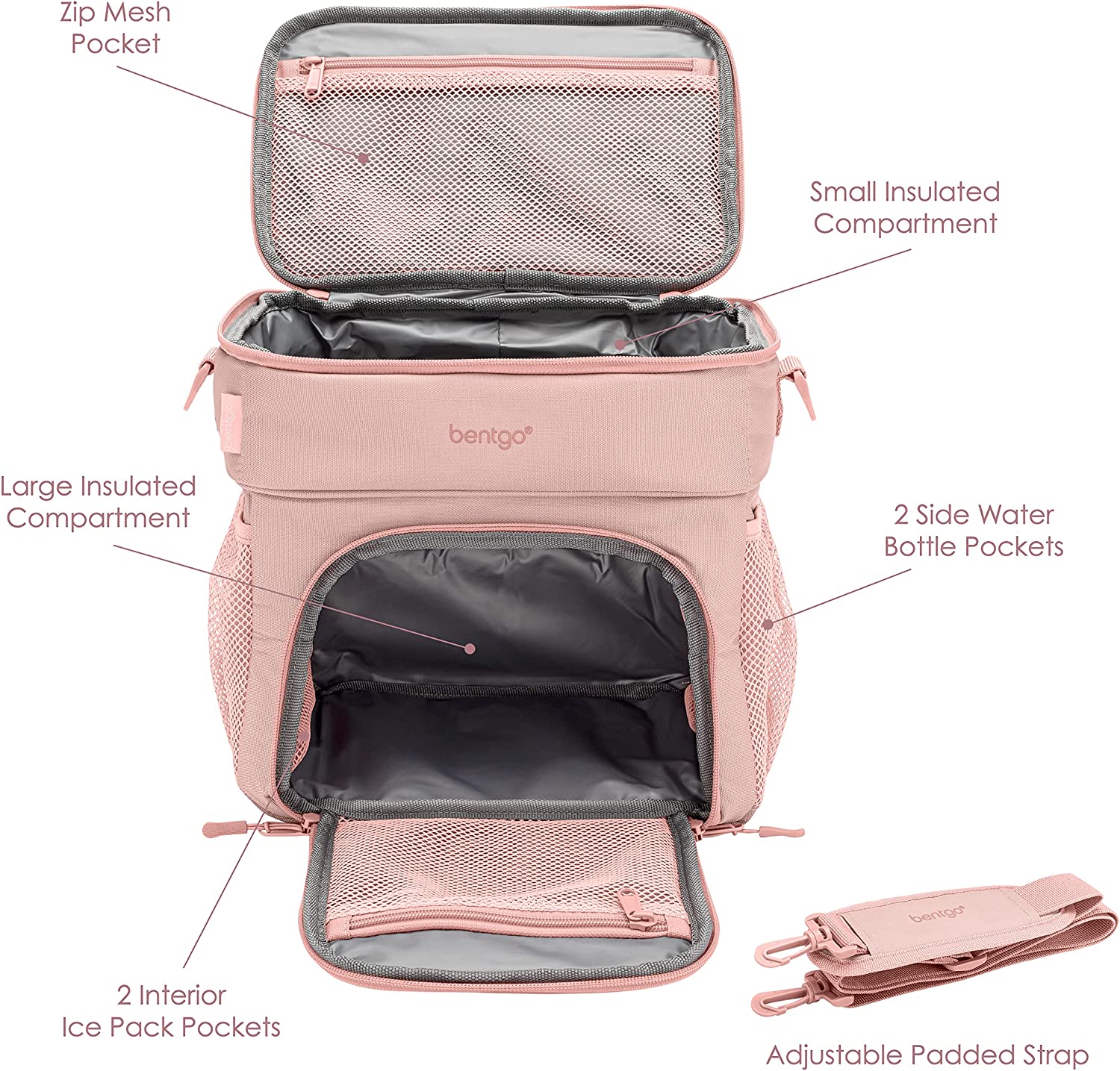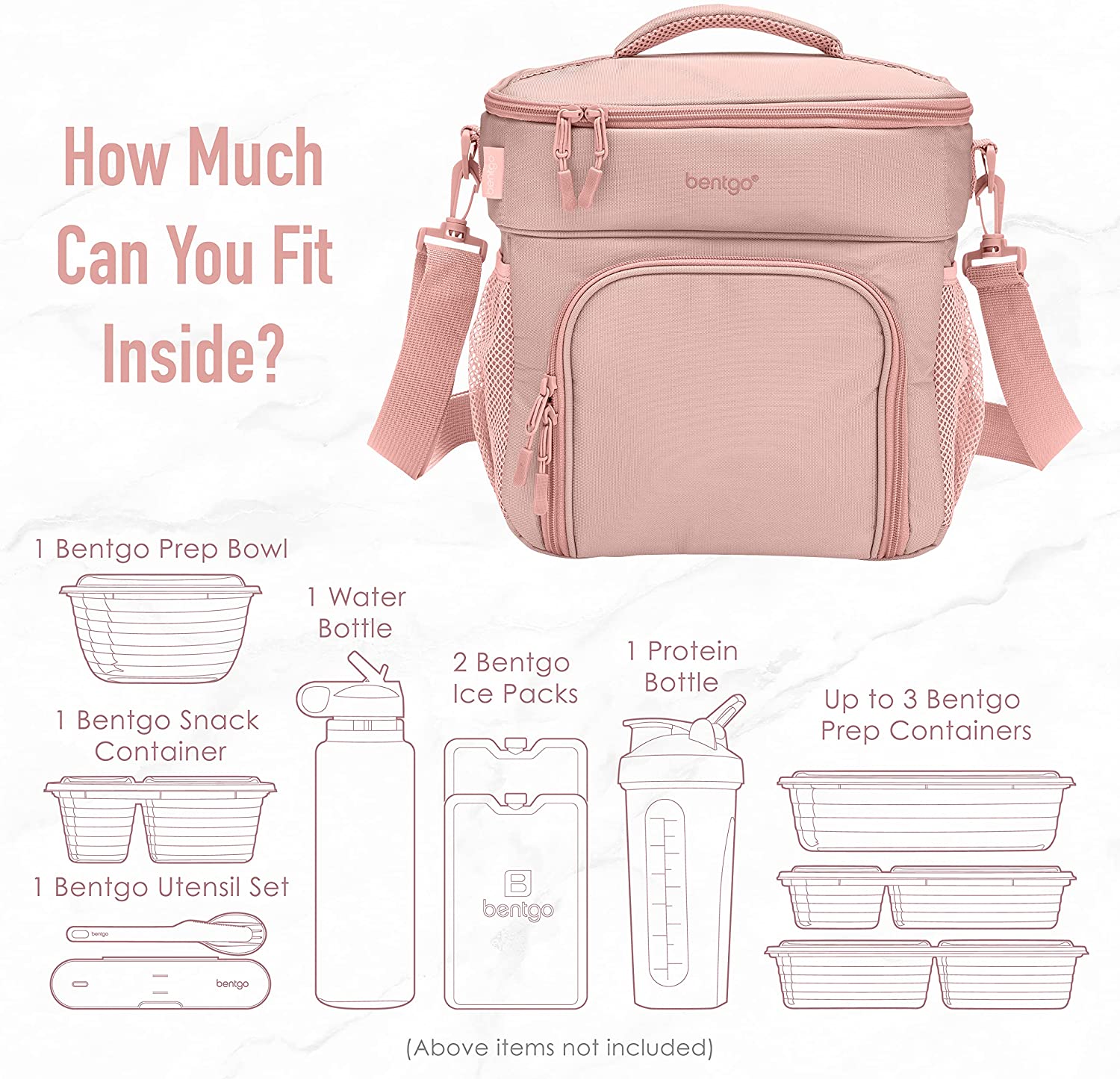 Bentgo® Prep Deluxe Multimeal Bag - Premium Insulation up to 8 Hrs with Water-Resistant Exterior & Interior. Extra Large Lunch Bag Holds 4 Meals & Snacks - Great for All Day Meal Prep (Blush)