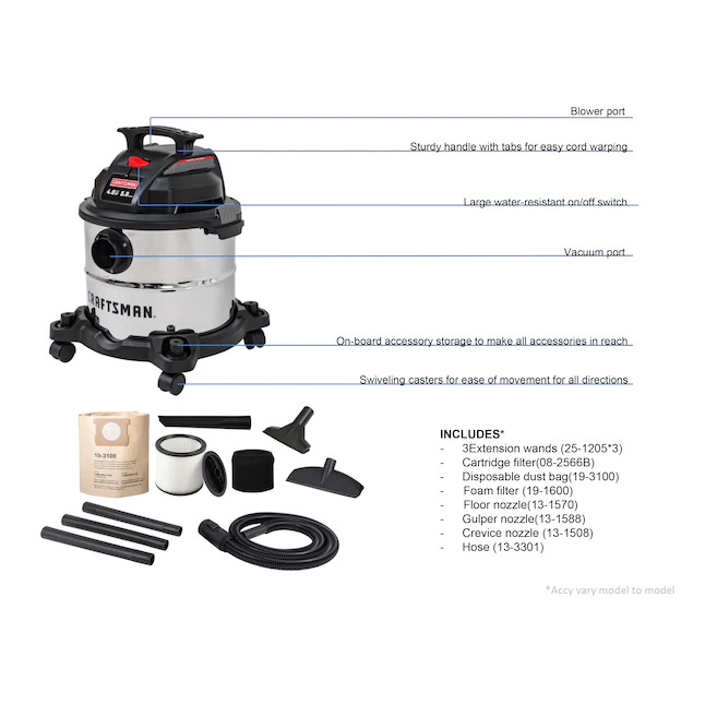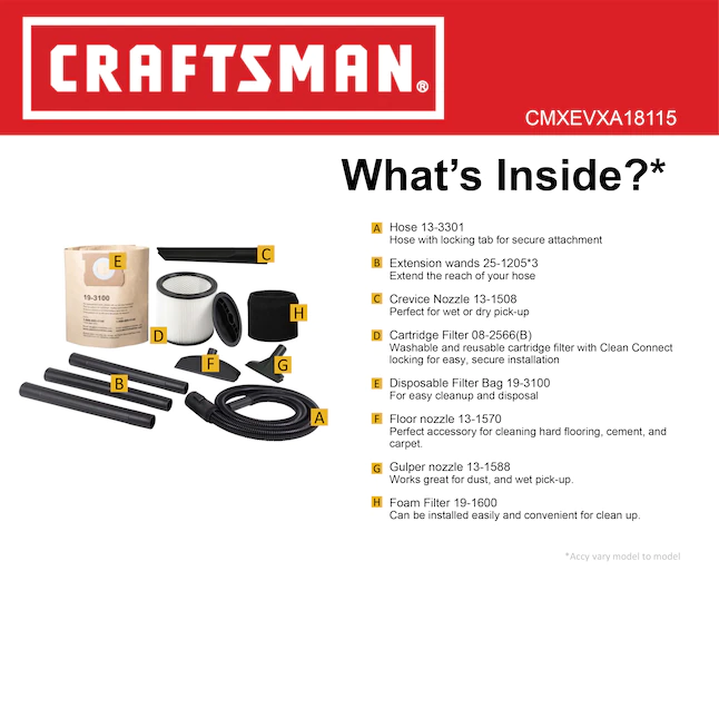 CRAFTSMAN CMXEVXA18115 5-Gallons 4-HP Corded Wet/Dry Shop Vacuum with Accessories Included