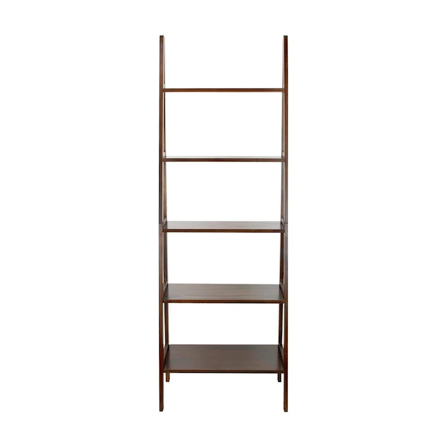 Casual Home 176-54 Ladder Warm Brown Wood 5-Shelf Ladder Bookcase (24.75-in W x 72-in H x 16-in D)
