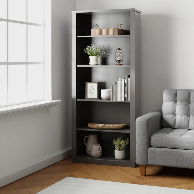 Brookside BS0001BKC00DG Eleanor Dark Grey Particleboard 5-Shelf Bookcase (31.5-in W x 72-in H x 12.5-in D)