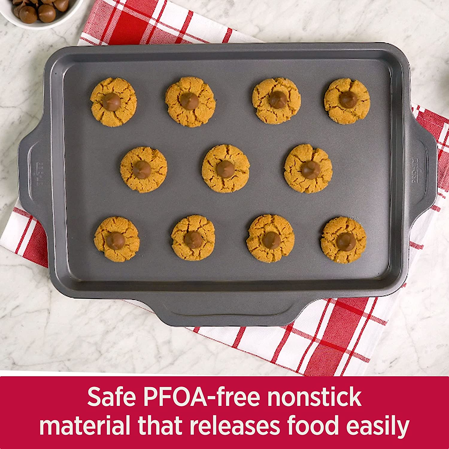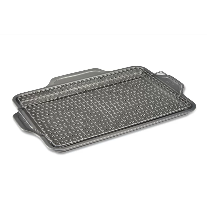 All-Clad J257S264 Pro-Release bakeware sheet with rack. 17 In x 11.5 In x 1 In. Grey