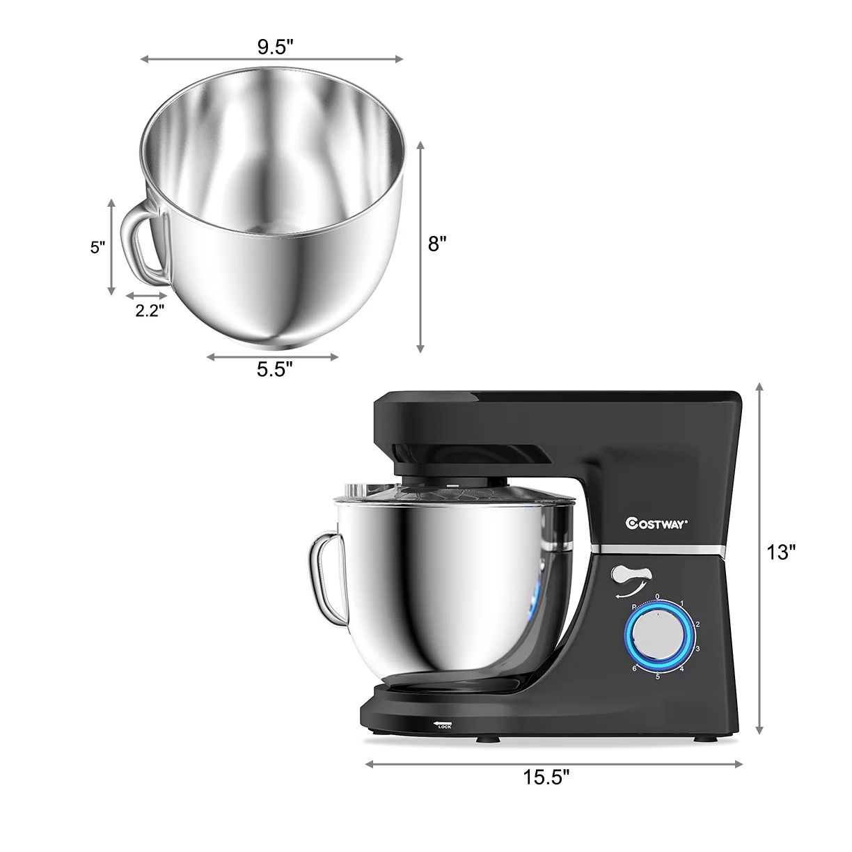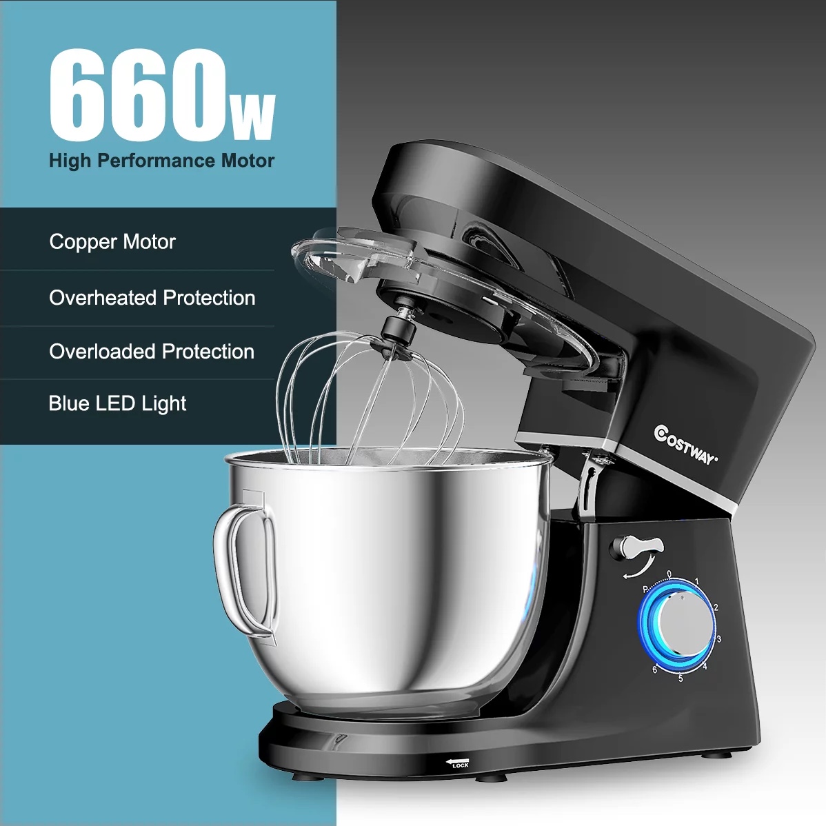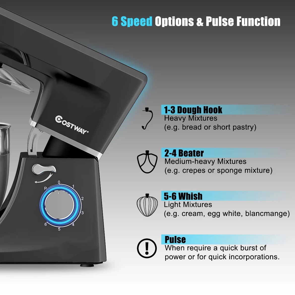 Costway Tilt-Head Stand Mixer 7.5 Qt 6 Speed 660W with Dough Hook. Whisk & Beater. Black