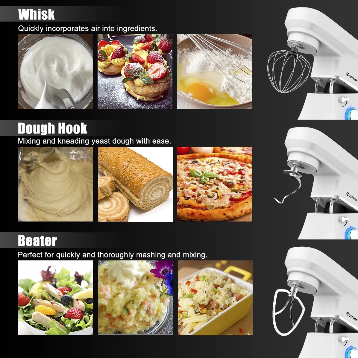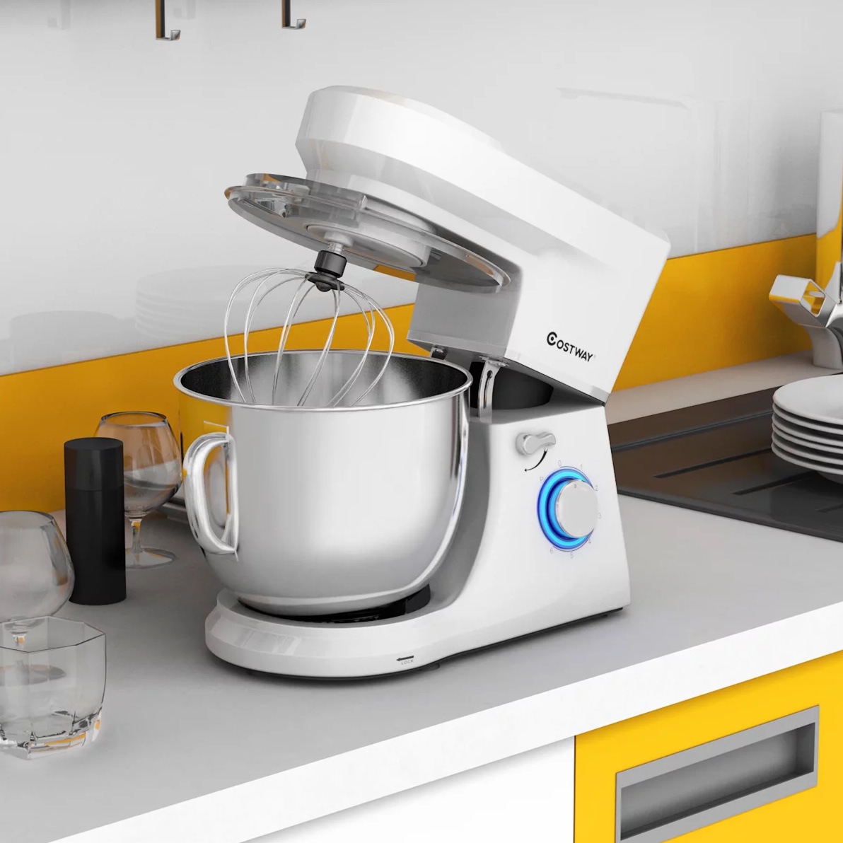 Costway Tilt-Head Stand Mixer 7.5 Qt 6 Speed 660W with Dough Hook. Whisk & Beater. White