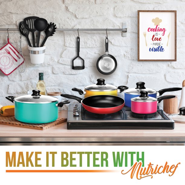 NutriChef 15 Piece Kitchenware Pots & Pans Non-Stick Cookware Set