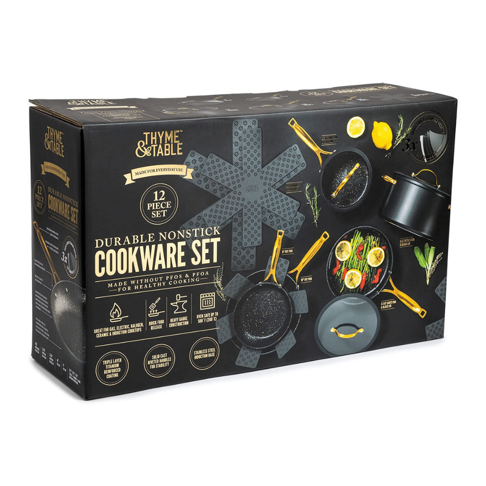Thyme & Table Non-Stick 12 Piece Gold Pots And Pans Cookware Set