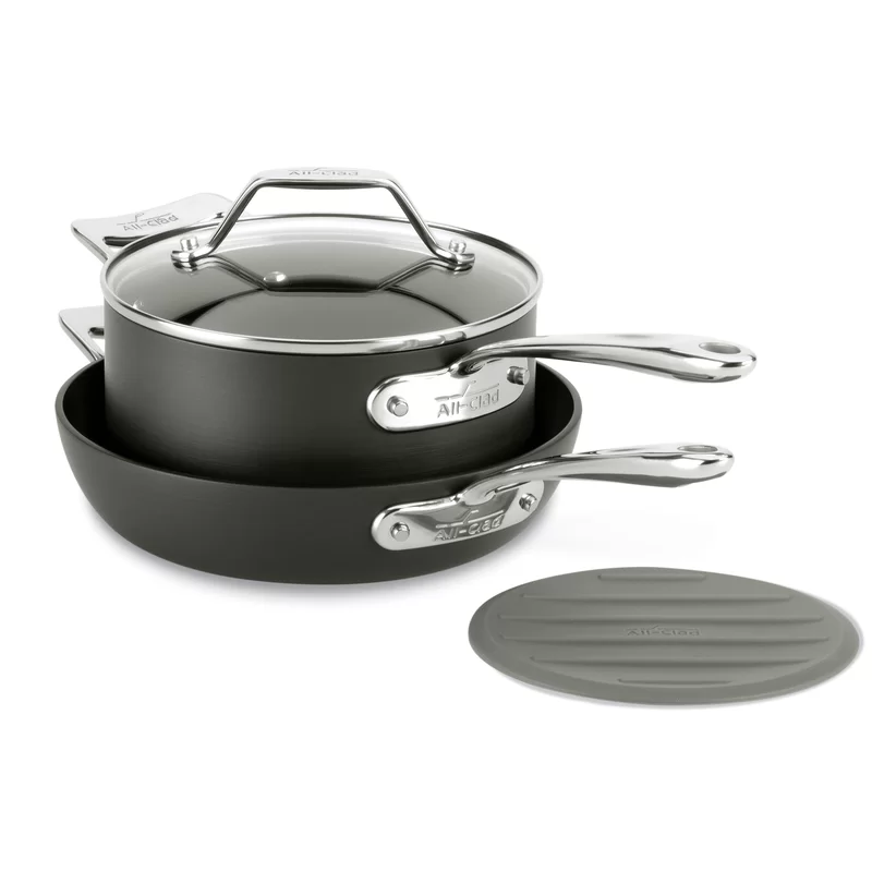 All-Clad H911S464 Essentials Nonstick Skillet set. 4-Piece. Grey
