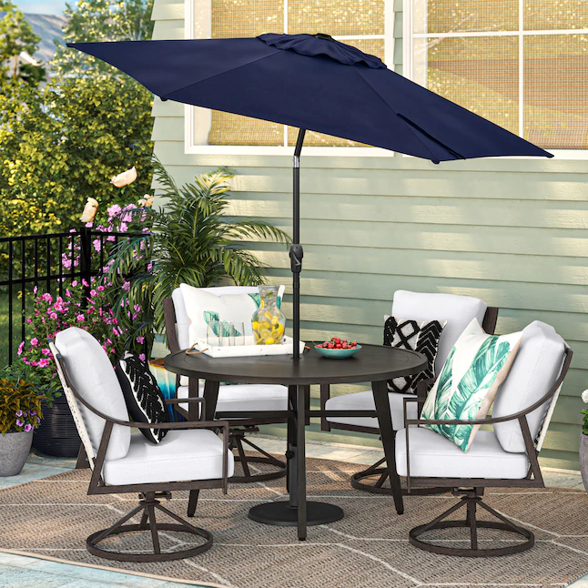 Style Selections 7.5-ft Blue Push-button Tilt Market Patio Umbrella