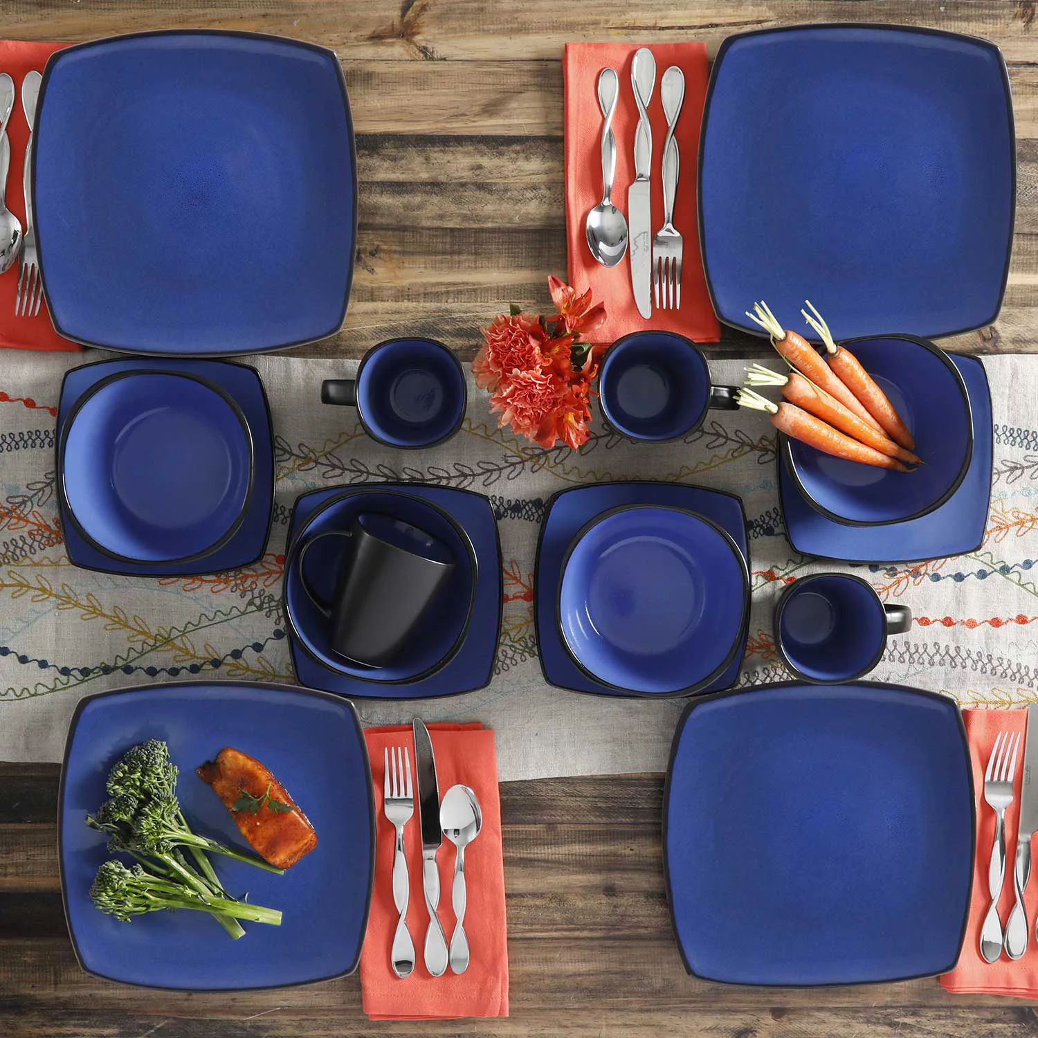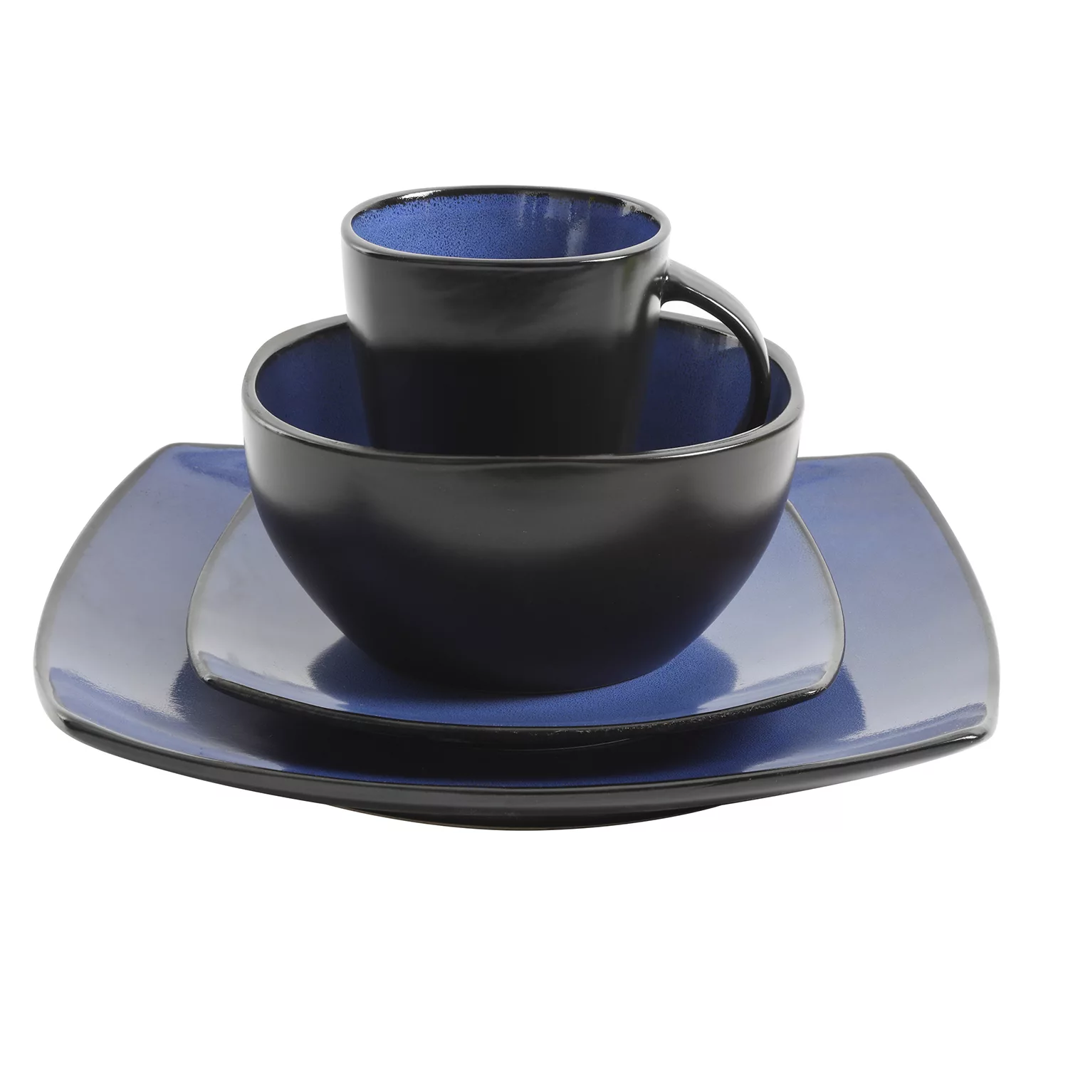 Gibson Home Soho Lounge 16-Piece Reactive Glaze Dinnerware Set. Sapphire