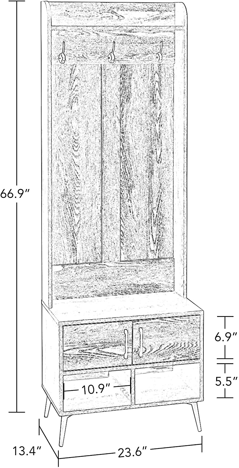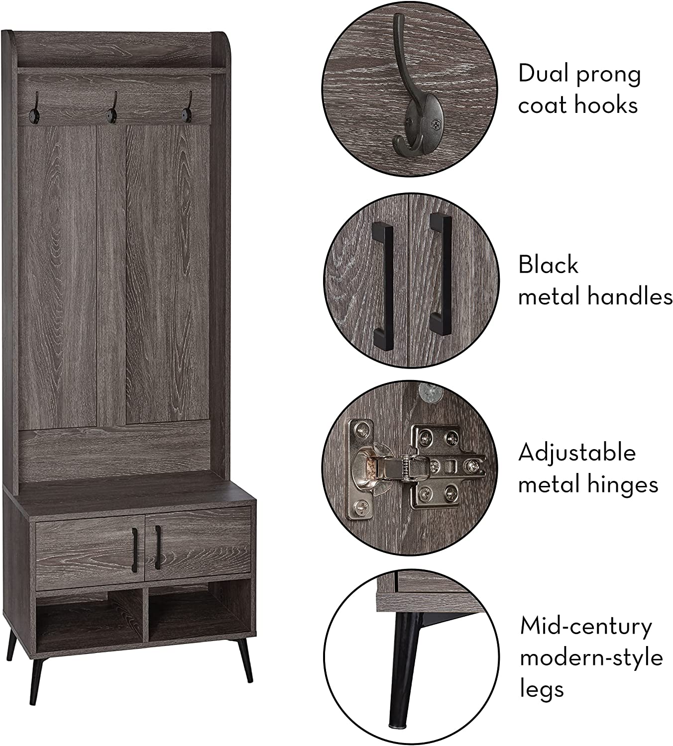 RiverRidge Woodbury Dark Weathered Wood Grain 3-Hook Coat Stand