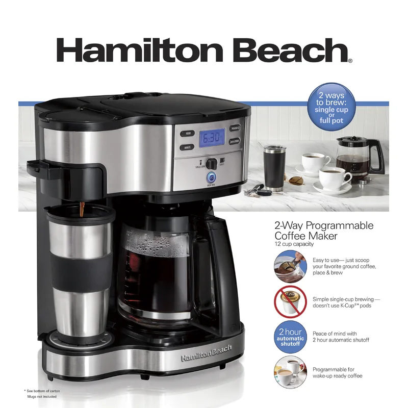 Hamilton Beach 49980Z 2-Way Coffee Maker with 12 Cup Carafe & Pod Brewing Black & Stainless