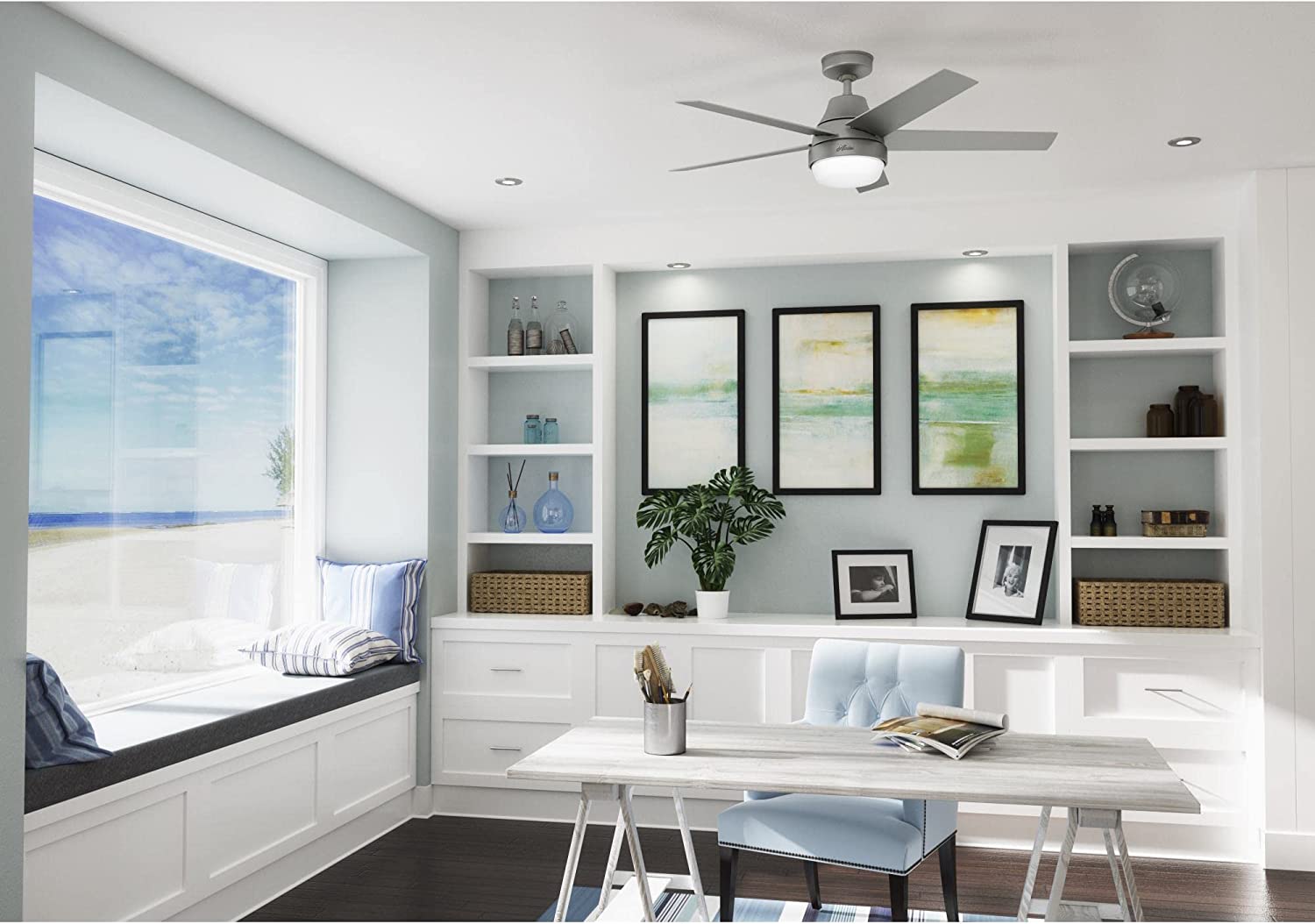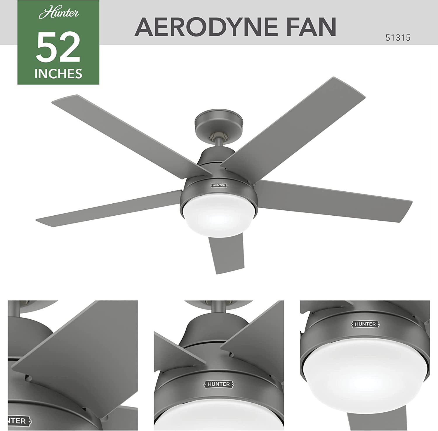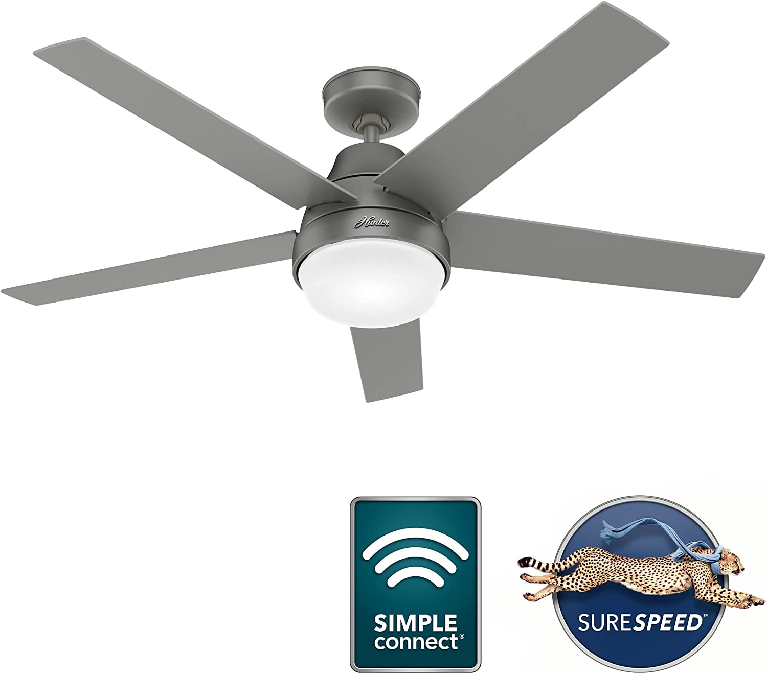 Hunter Aerodyne 52-in Matte Silver LED Indoor Smart Ceiling Fan with Light Remote (5-Blade)