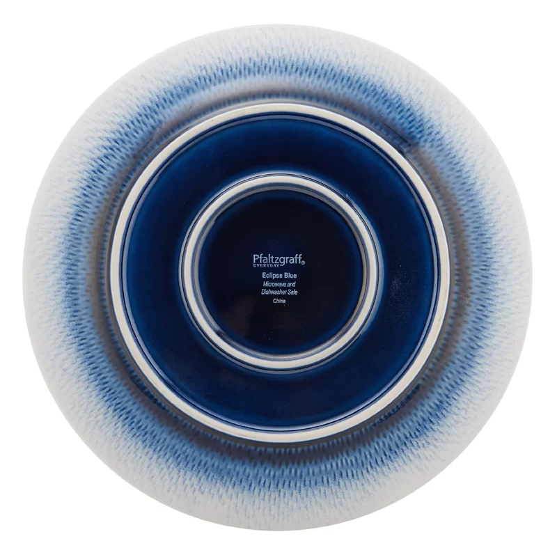 Pfaltzgraff 5154855 Eclipse Blue 16-Piece Stoneware Round Dinnerware Set. Blue/White