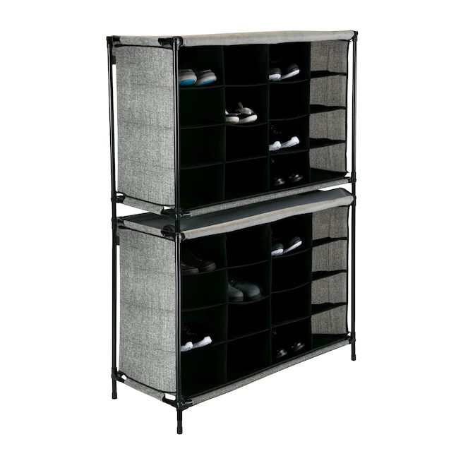 Simplify 16 Pair Stackable Shoe Rack Organizer with Cover for Closet Bedroom & Entryway. Black