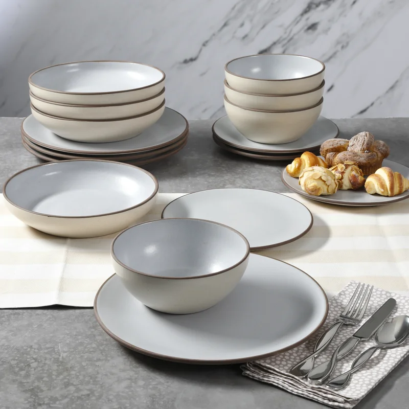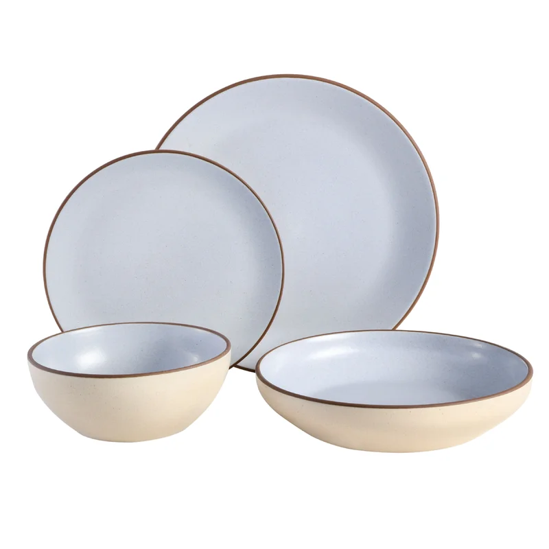 Gibson Elite Contempo Classic Double Bowl Dinnerware Set. Service for 4 (16pcs). Light Blue