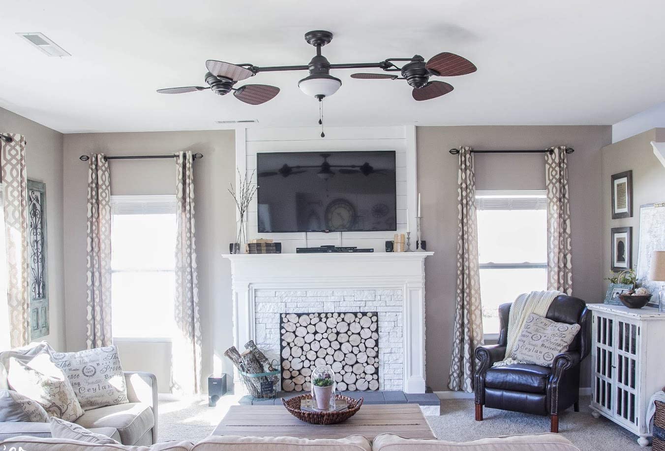 Harbor Breeze Twin Breeze II 74-in Oil Rubbed Bronze LED Indoor/Outdoor Ceiling Fan with Light (6-Blade)