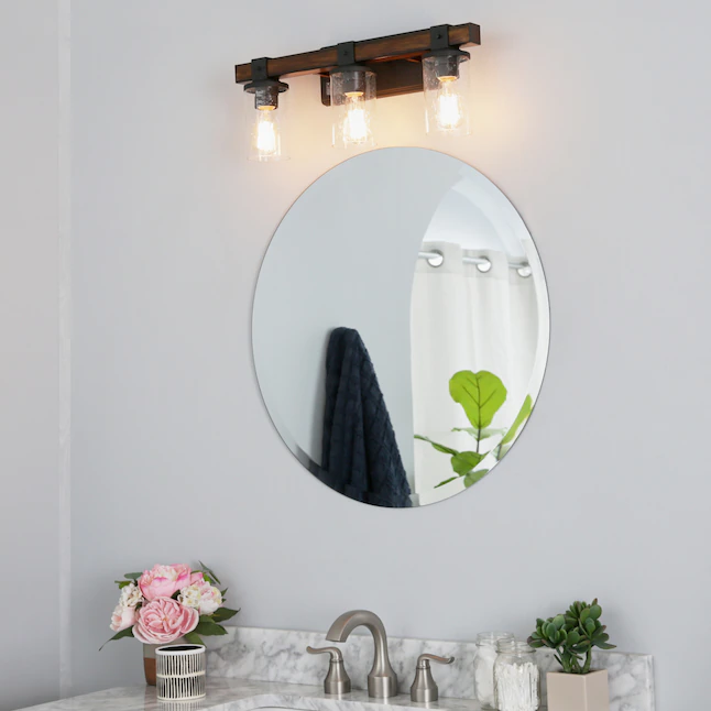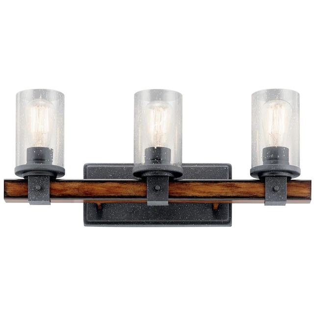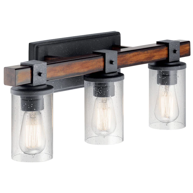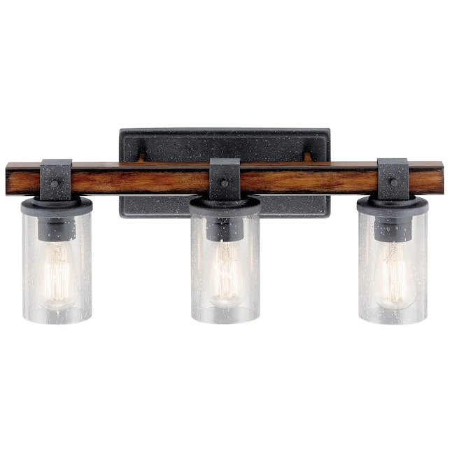 Kichler Barrington 22-in 3-Light Distressed Black and Wood Tone Rustic Vanity Light