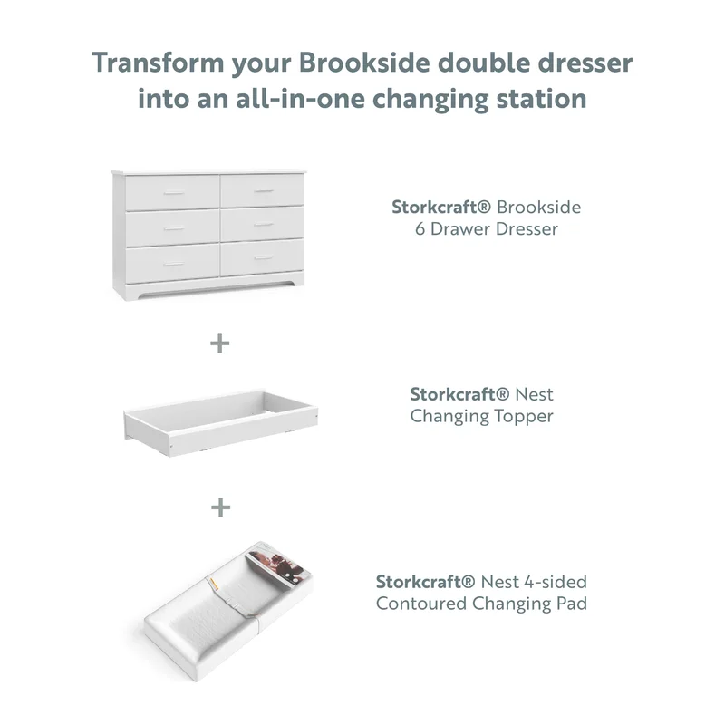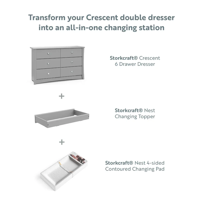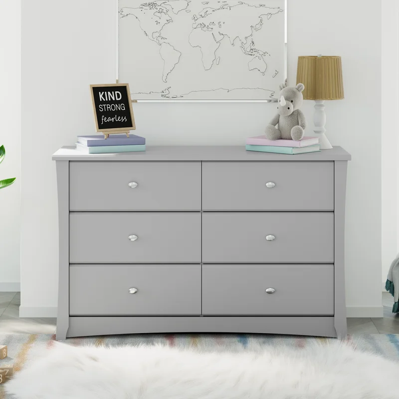 Storkcraft 03666-10G Brookside 6-Drawer Gray Dresser 33.43 in. H x 53.35 in. W x 16.73 in. D
