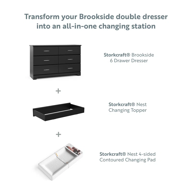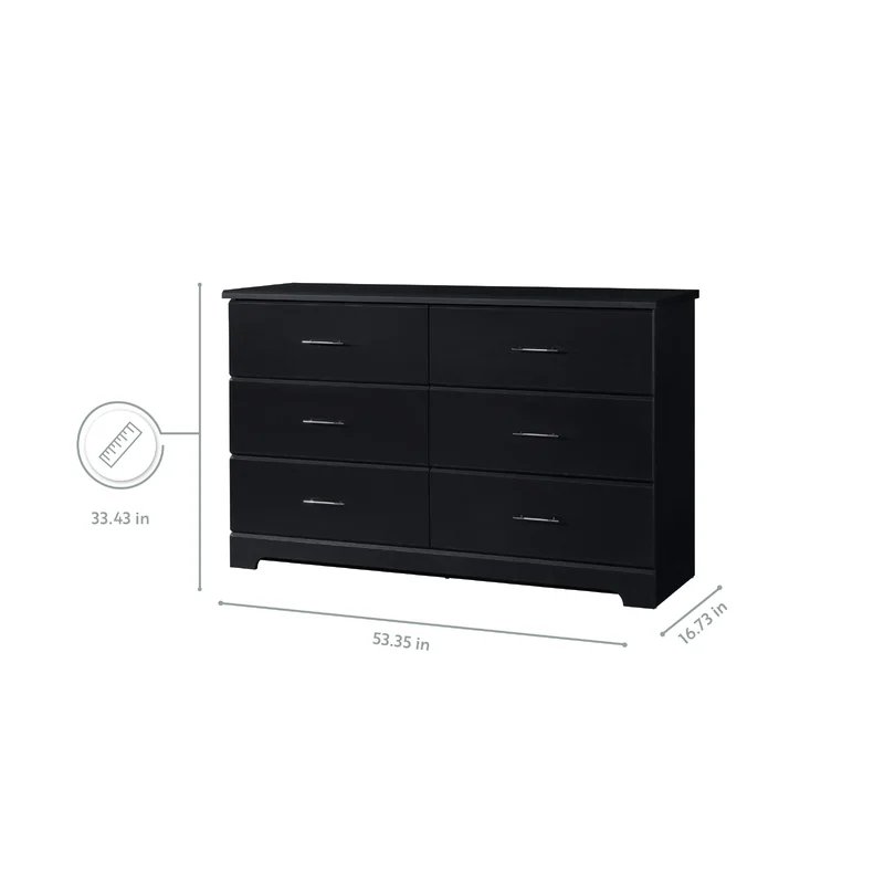 Storkcraft 03666-10B Brookside 6-Drawer Black Dresser 33.43 in. H x 53.35 in. W x 16.73 in. D