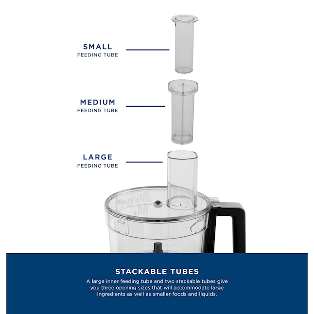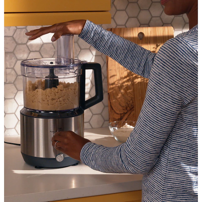 GE Food Processor | 12 Cup | Complete With 3 Feeding Tubes. Stainless Steel Mixing Blade & Shredding Disc | 3 Speed | Great for Shredded Cheese. Chicken & More | Kitchen Essentials | 550 Watts