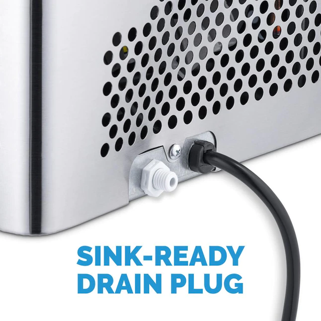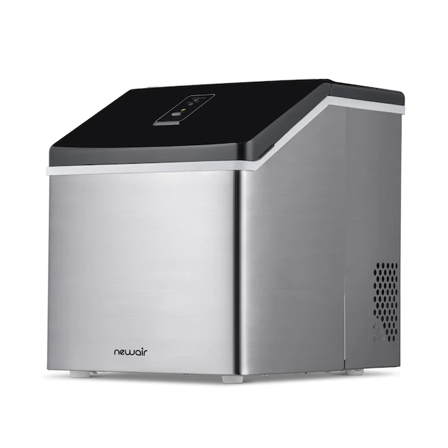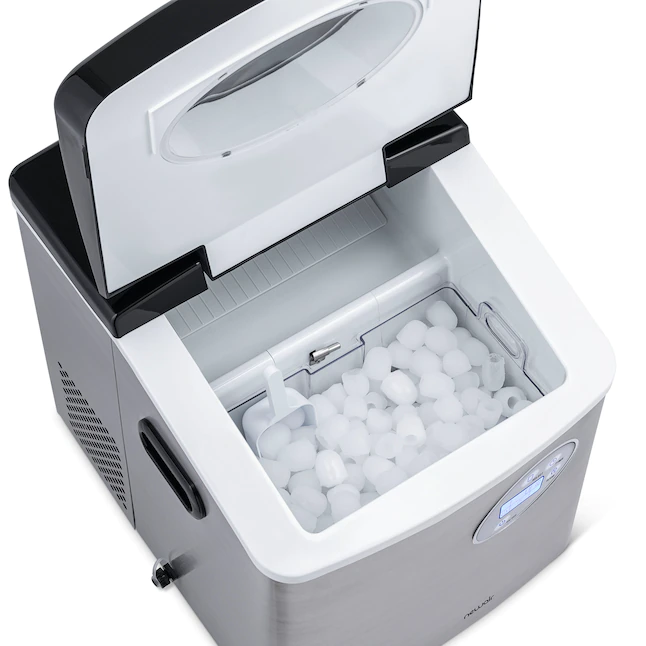 NewAir AI-100SS Portable Ice Maker 28 lb. Daily - Countertop Compact Design. 3 Size Bullet Shaped Ice. Stainless with Black Lid