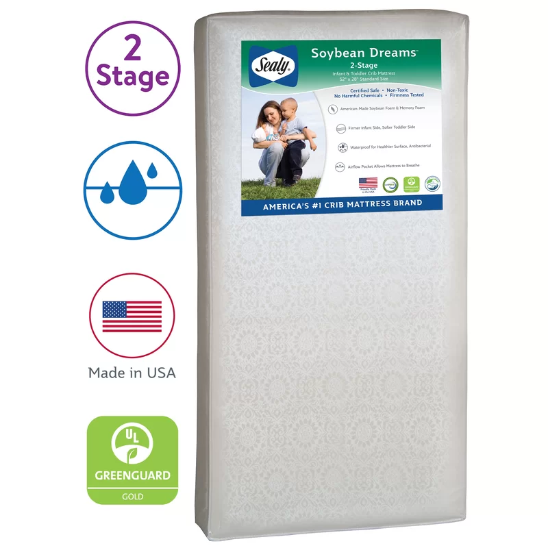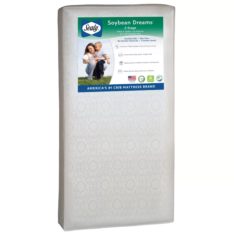 Sealy Soybean Dreams 2-Stage Antibacterial Waterproof Baby Crib Mattress and Toddler Mattress - Soy Foam - 52″ x 28″ EM818-PHN1