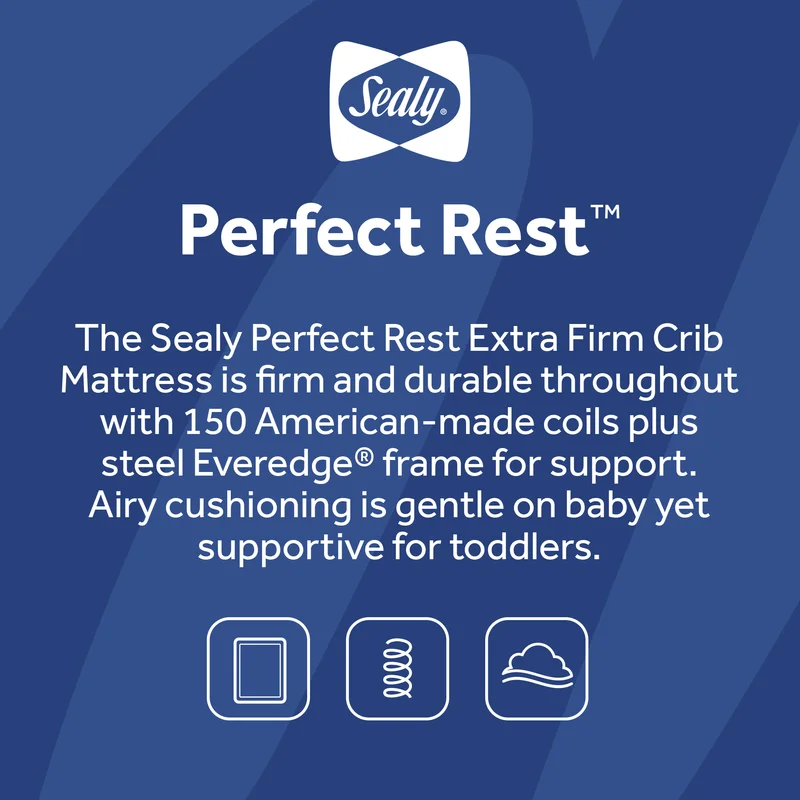 Sealy EM240-KEL1 Perfect Rest Waterproof Baby Crib & Toddler Mattress Extra Firm Airy Comfort - 150 Premium Coils