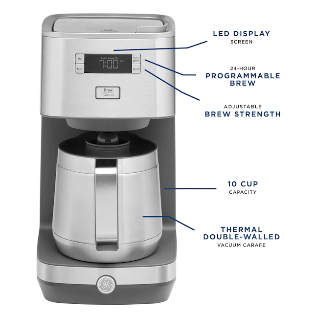 GE Drip Coffee Maker With Timer 10-Cup Stainless Steel Residential Drip Coffee Maker