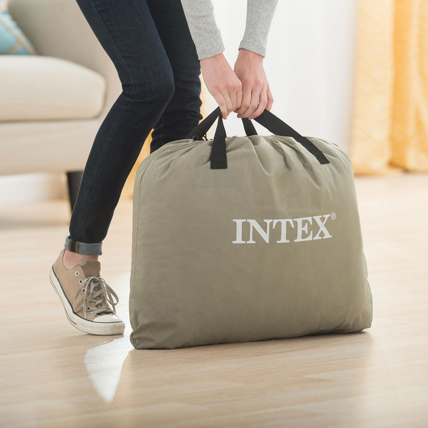 Intex Queen Dura-Beam Deluxe Series Comfort Headboard Airbed with Internal Pump
