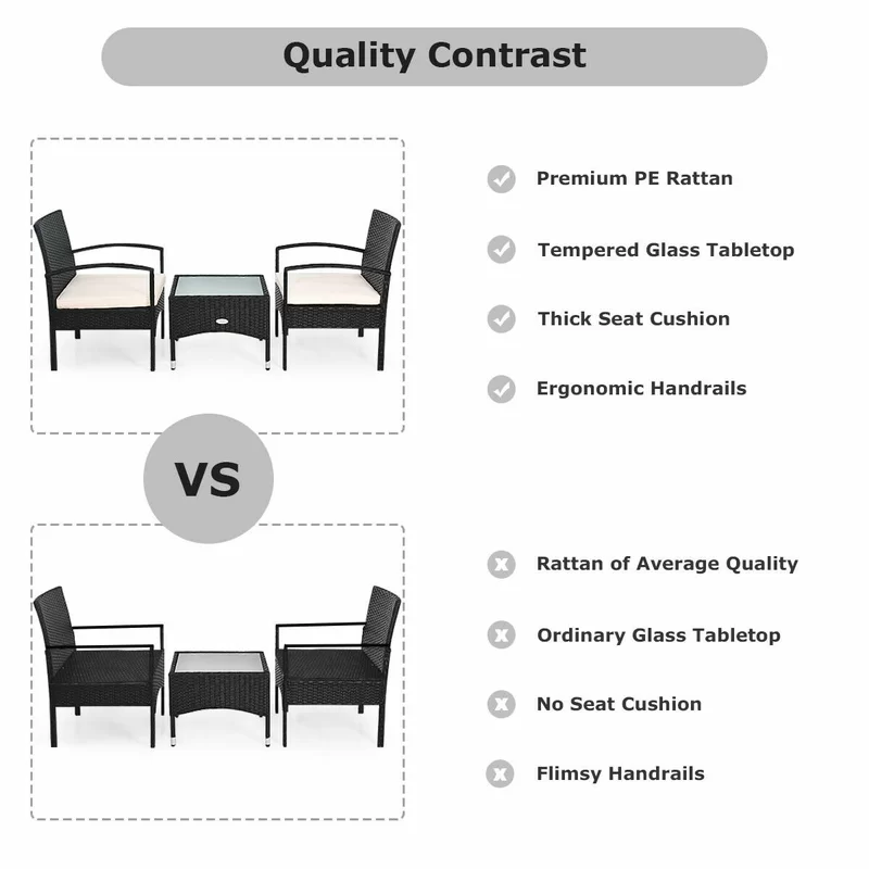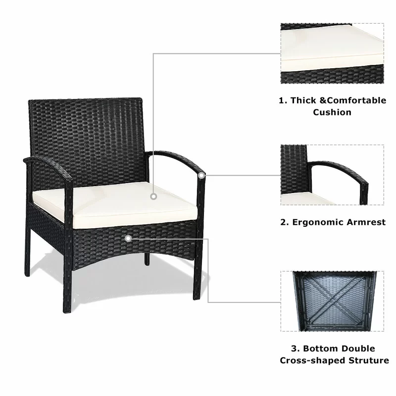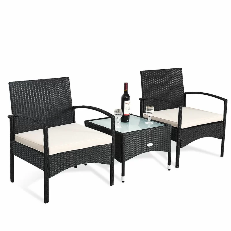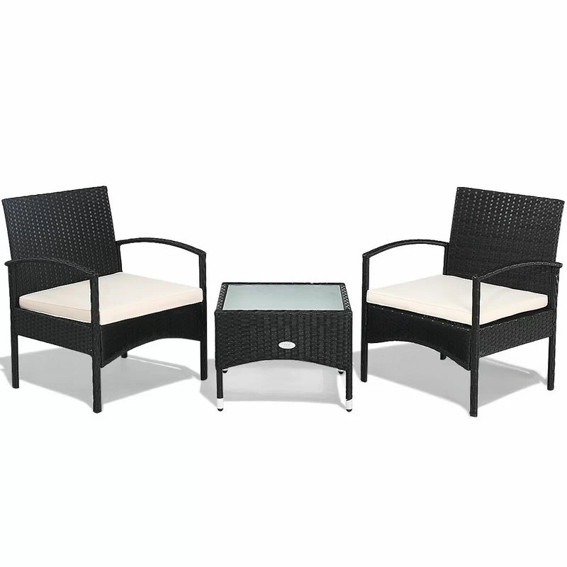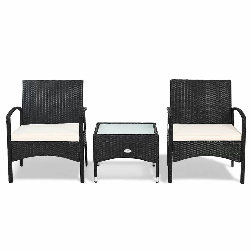 Costway HW62356 3-Piece Wicker Patio Conversation Set with Cushions Coffee Table & 2 Rattan Chair