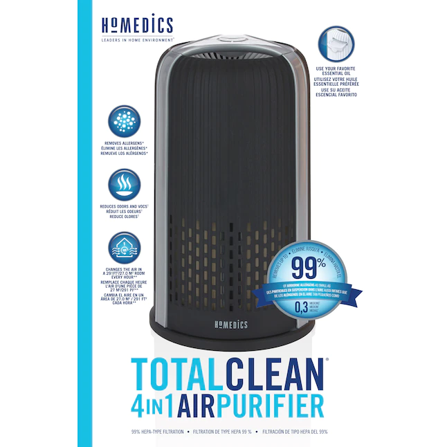 HOMEDICS 2-Speed (Covers: 90-sq ft) Ionic Black HEPA Air Purifier ENERGY STAR