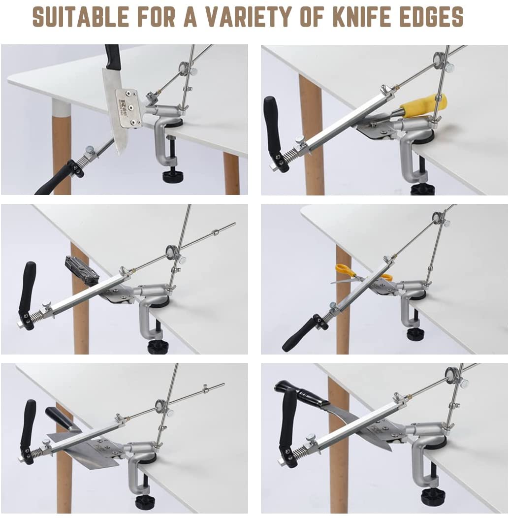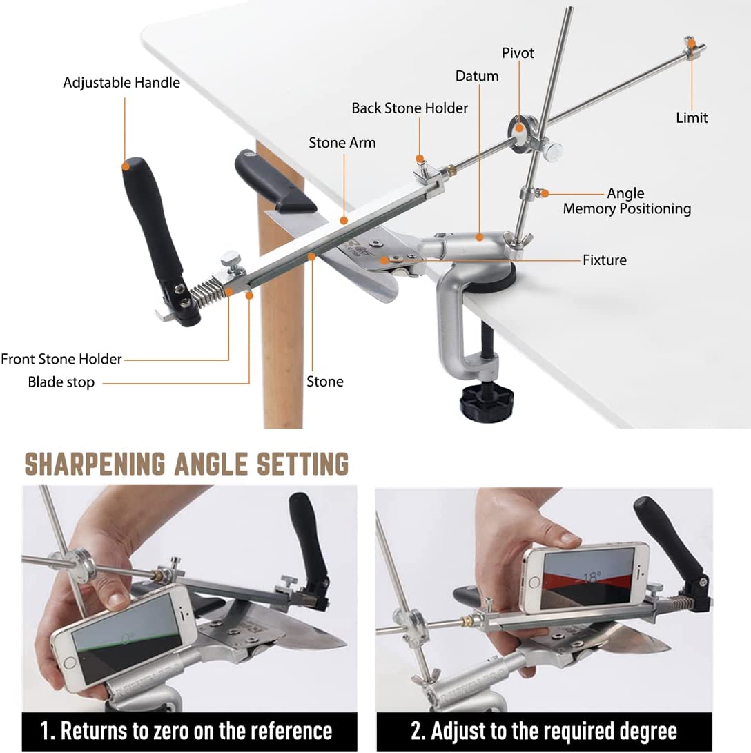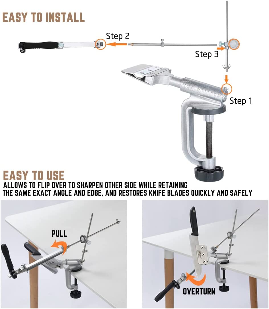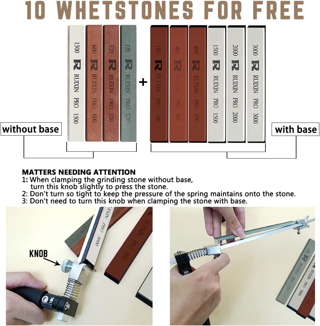 MOVIRON RUIXIN PRO RX-008 Professional Knife Sharpener with 10 Whetstones. 360° Rotation Flip Design Fixed-Angle Stainless Steel Kitchen Chef Knife Sharpening Kit Abrasive Holding System Tools