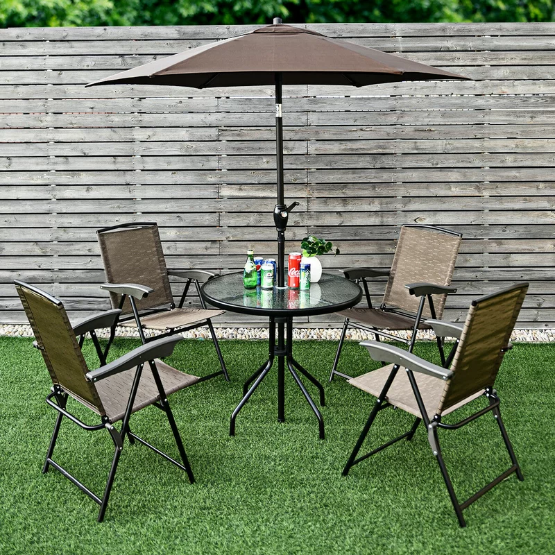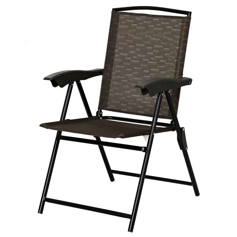 Costway OP3687 Brown Metal Patio Sling Folding Chair with Adjustable Back (Set of 4)
