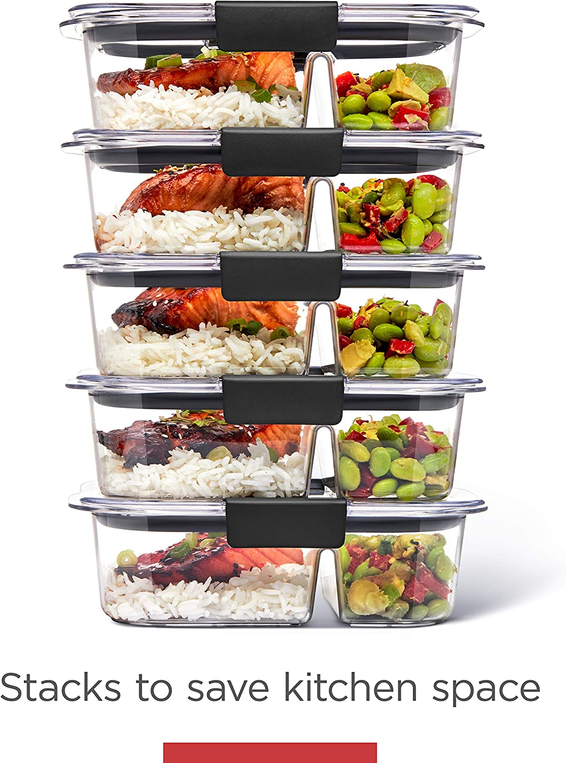 Rubbermaid 5-Piece Brilliance Food Storage Containers for Meal Prep with 2 Compartments and Lids. Dishwasher Safe. 4.7-Cup. Clear/Grey