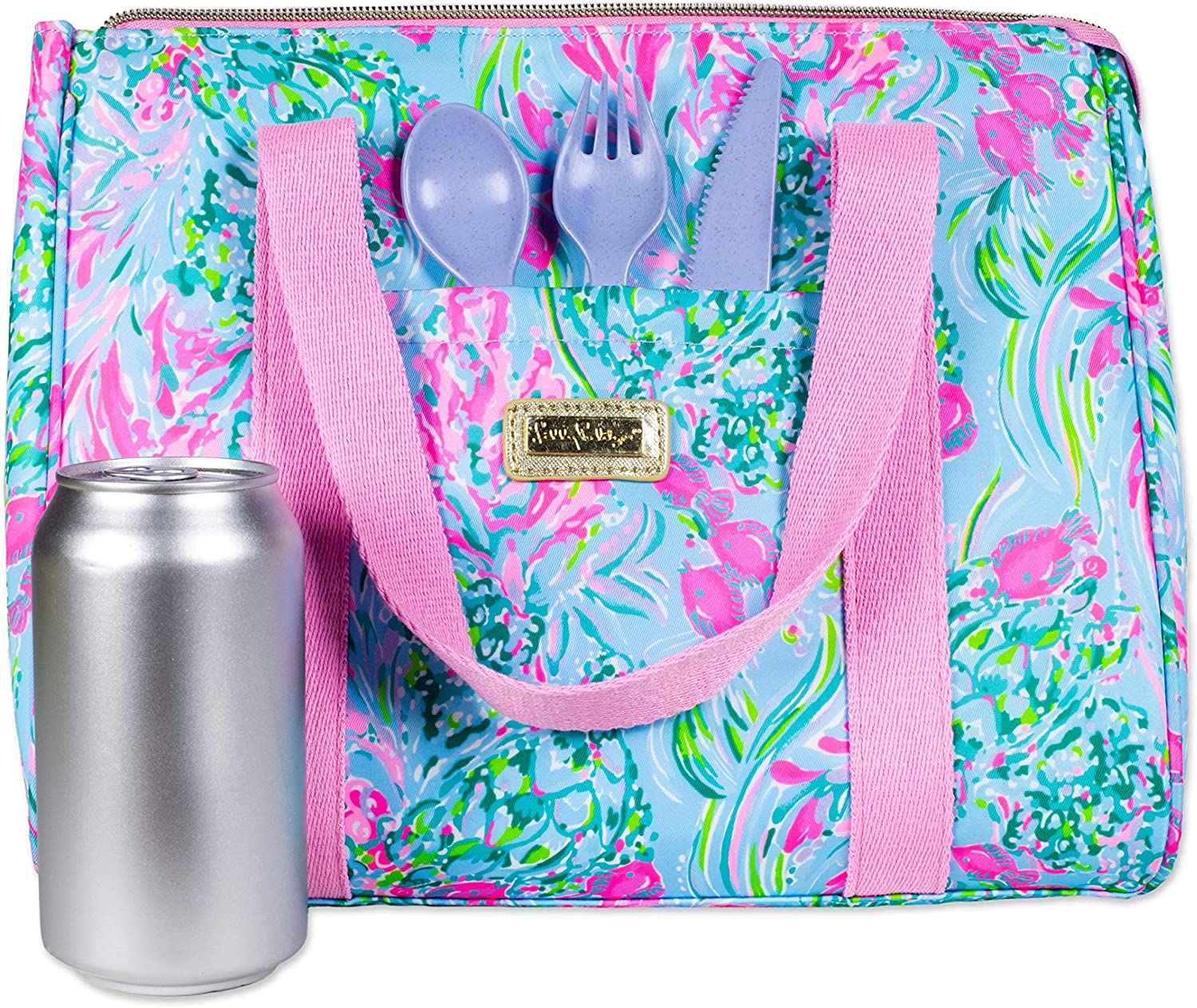 Lilly Pulitzer Thermal Insulated Lunch Cooler Large Capacity. Women-s Lunch Bag with Storage Pocket and Shoulder Straps. Best Fishes