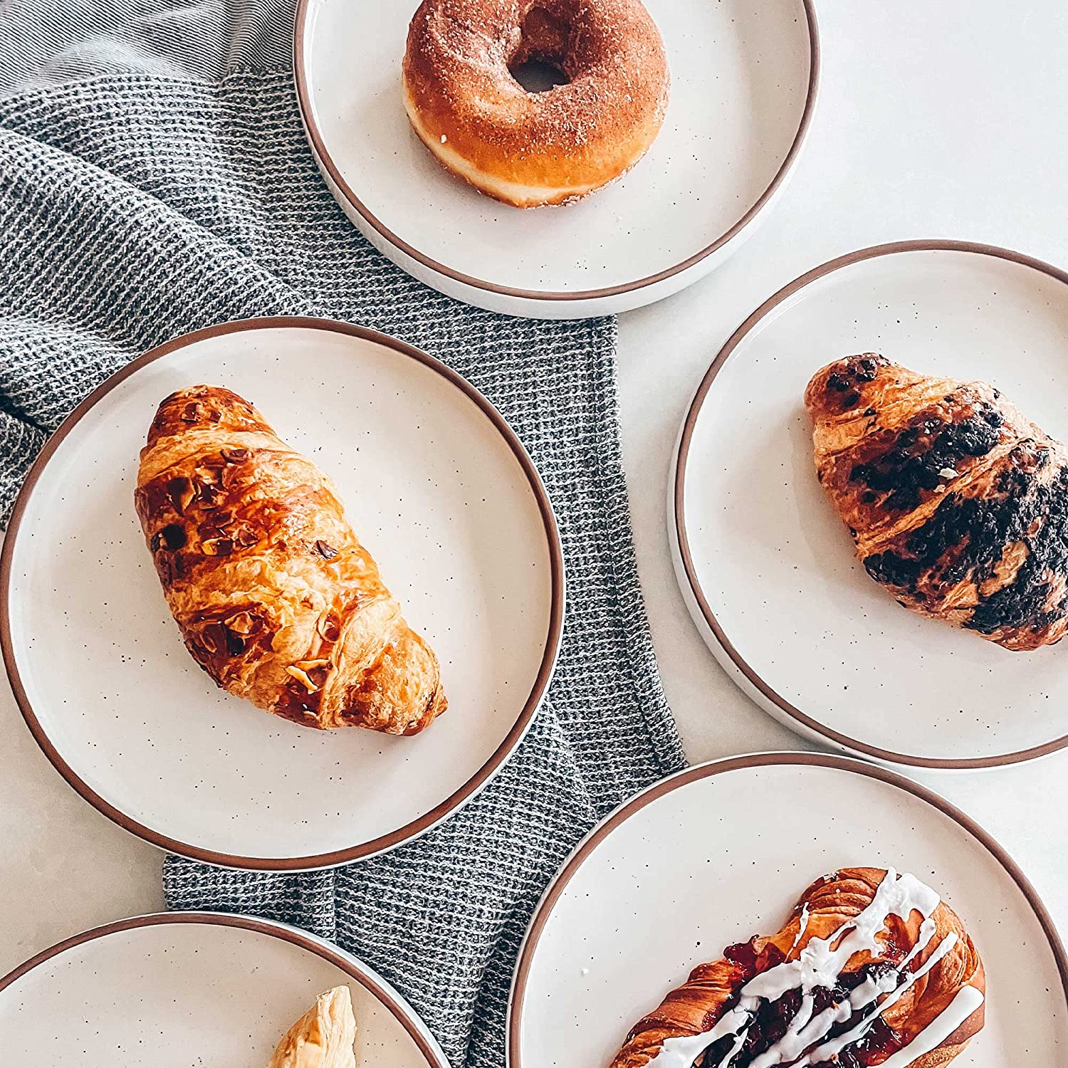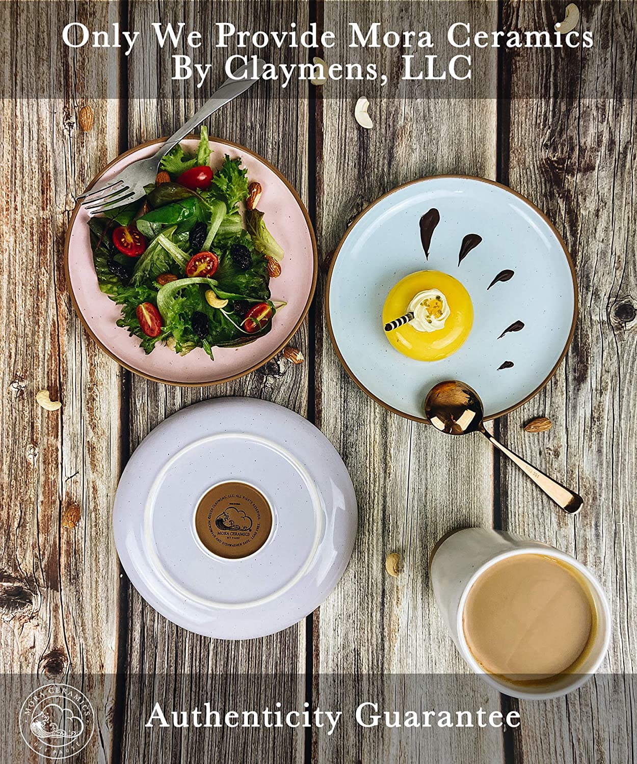 Mora Ceramic Flat Plates Set of 6 - 8 in - The Dessert. Salad. Appetizer. Small Lunch - Microwave. Oven. and Dishwasher Safe. - Vanilla White