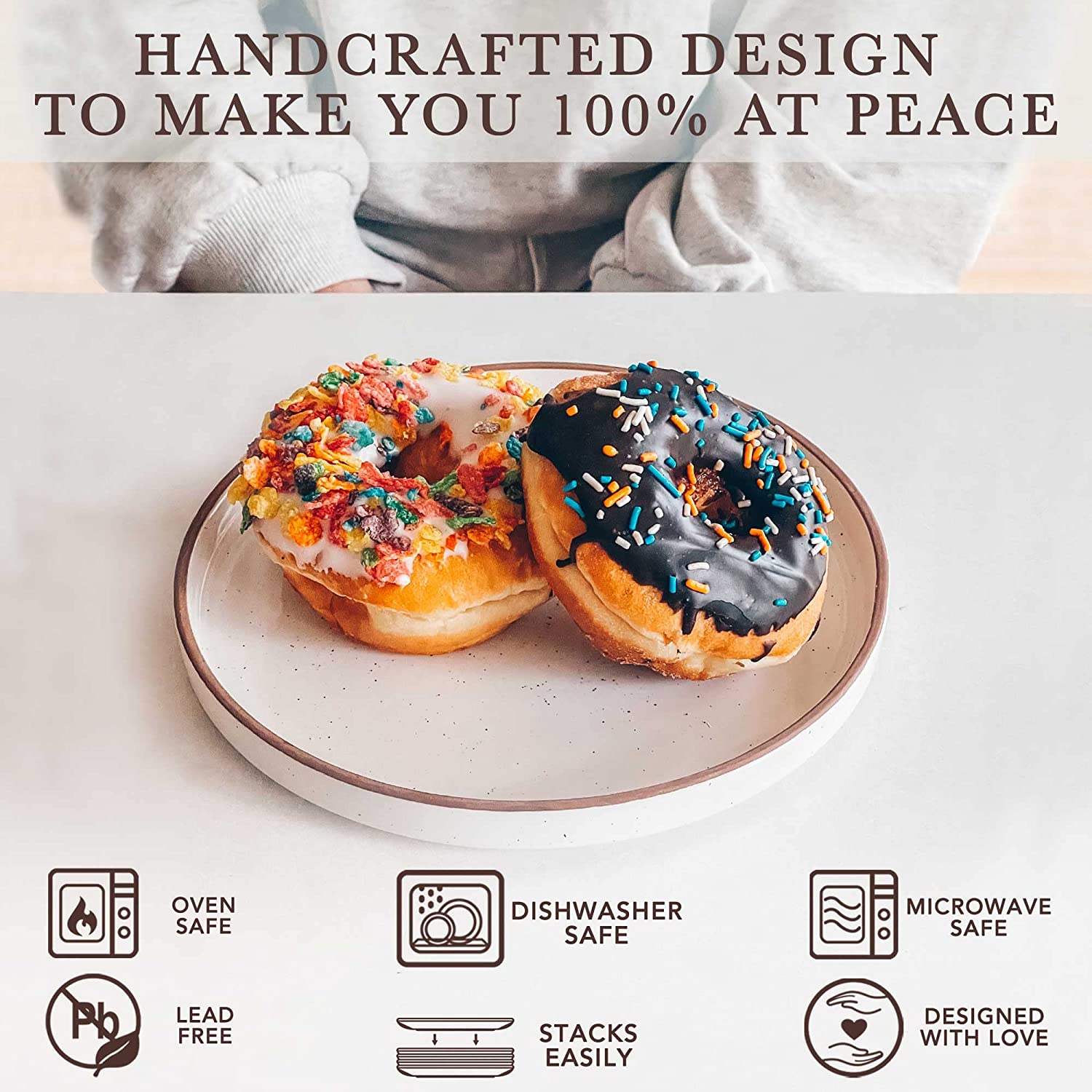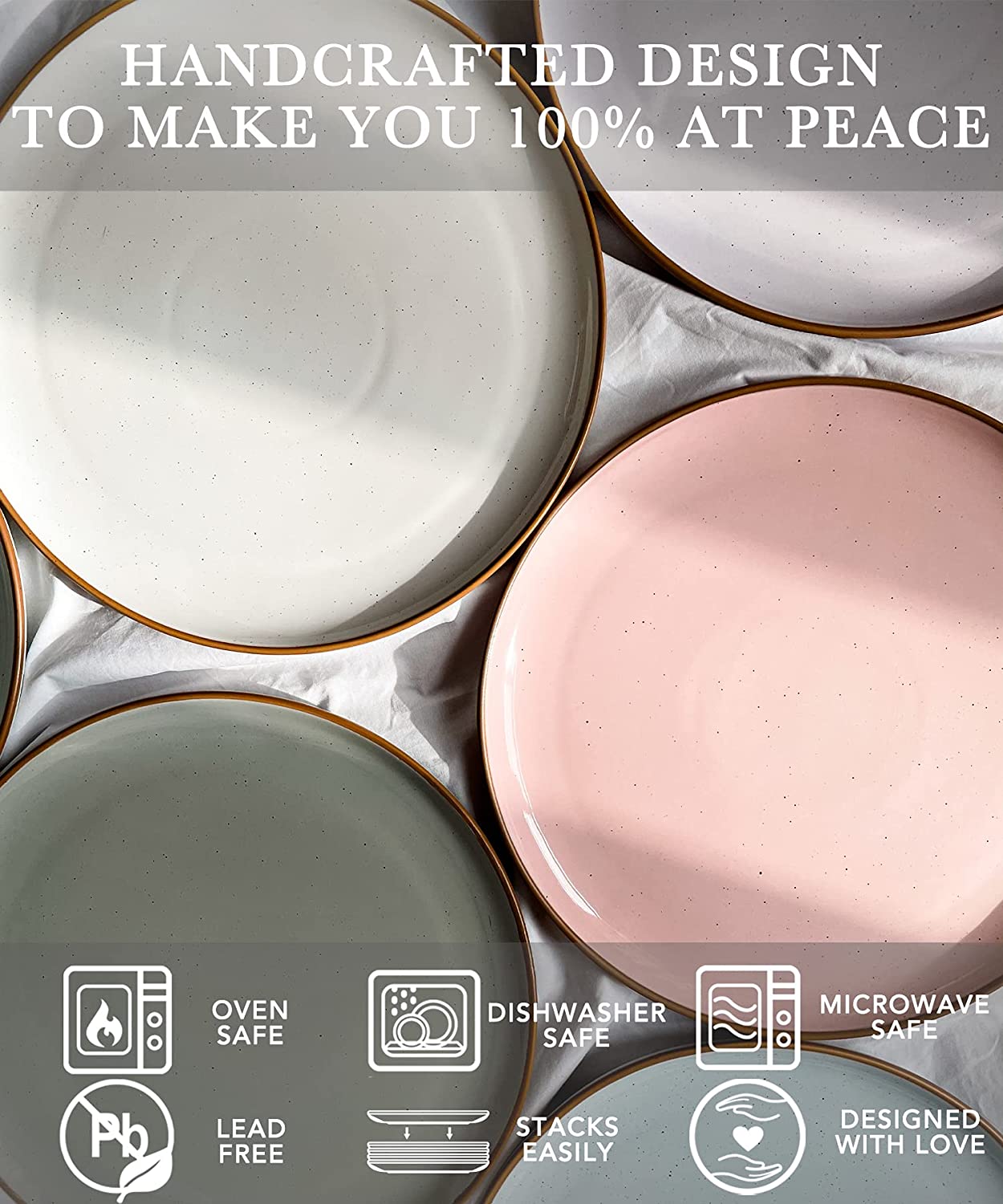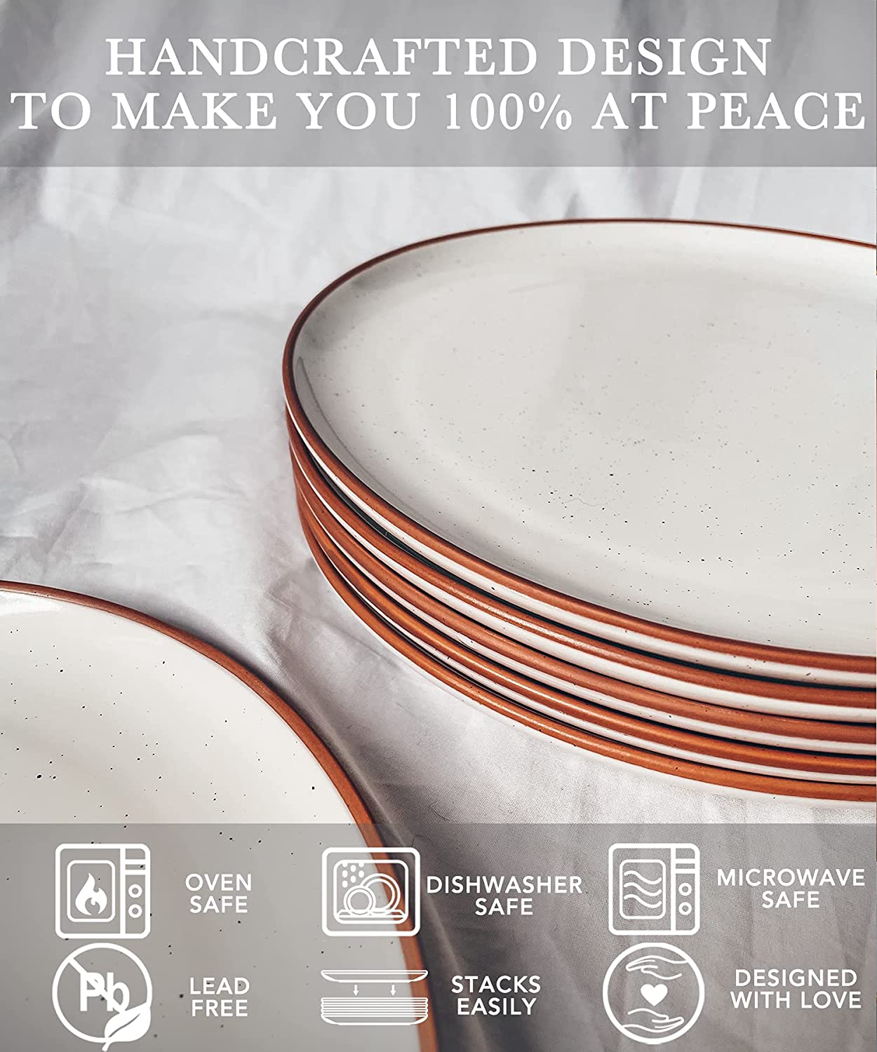 Mora Ceramic Dinner Plates Set of 6. 10 inch Dish Set - Microwave. Oven. and Dishwasher Safe. Scratch Resistant - Vanilla White