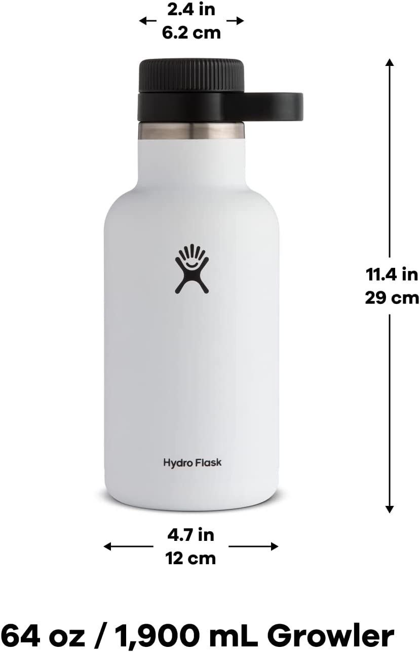 Hydro Flask G64110 64 oz. Beer Growler- Vacuum Insulated & Reusable with Easy Carry Handle. White