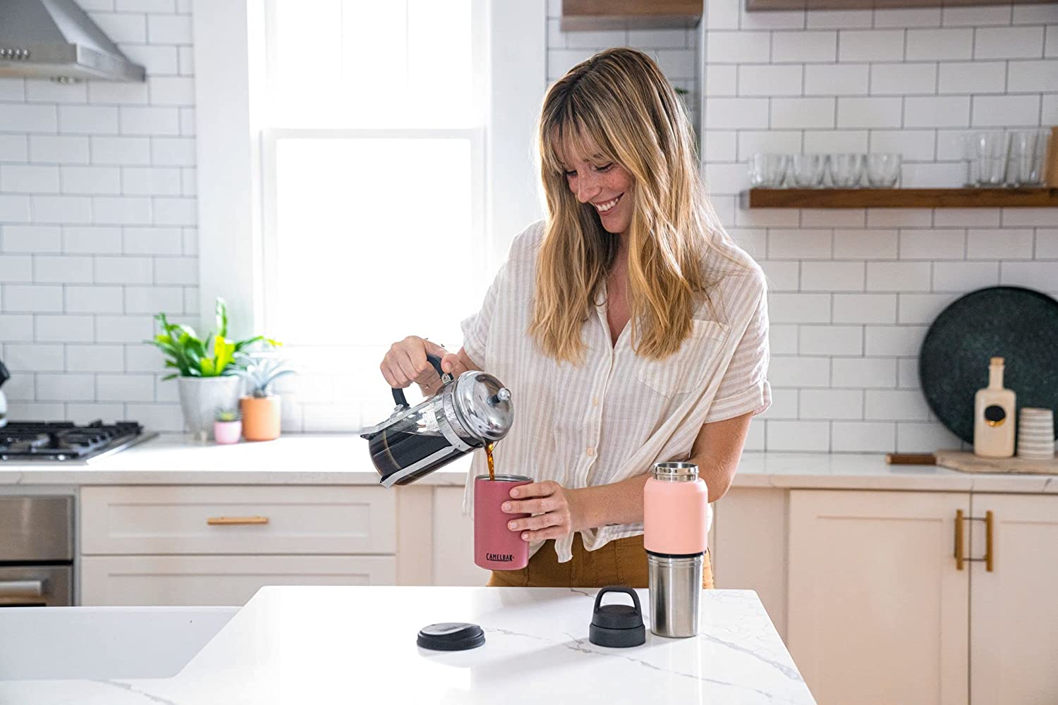 CamelBak MultiBev Water Bottle & Travel Cup – Insulated Stainless Steel.Terracotta Rose/Camellia Pink (CB2424601065)