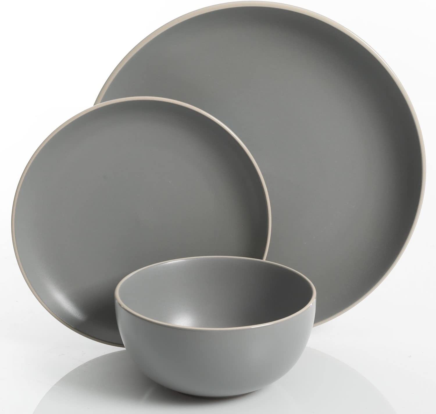 Gibson Home Rockaway 12-Piece Dinnerware Set Service for 4. Grey Matte