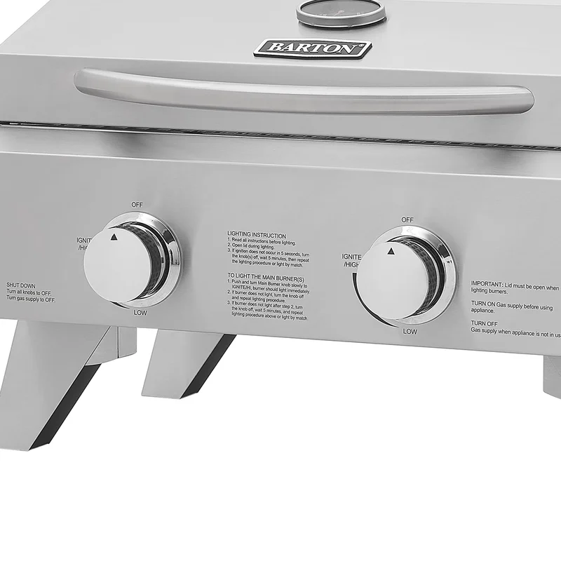 Barton 95541 Portable Outdoor Tabletop Propane Gas Dual Burner Grill in Stainless Steel Silver with Drip Tray