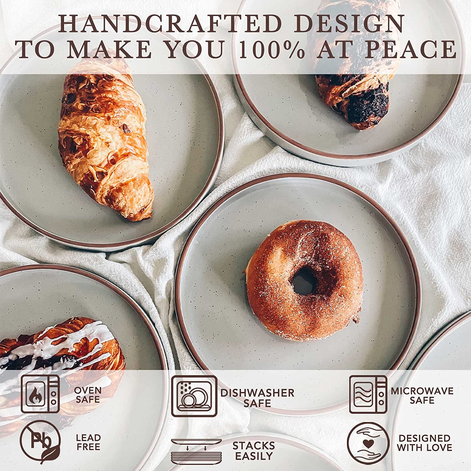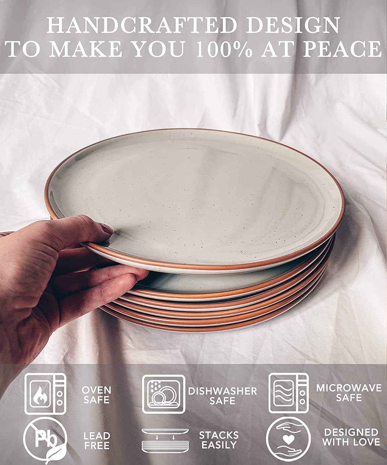 Mora Ceramic Dinner Plates Set of 6. 10 inch Dish Set - Microwave. Oven. and Dishwasher Safe. Scratch Resistant. Modern Rustic Dinnerware