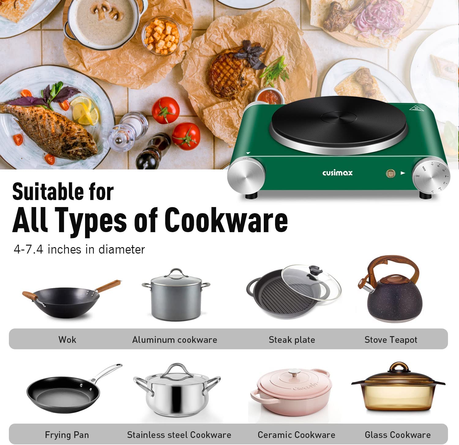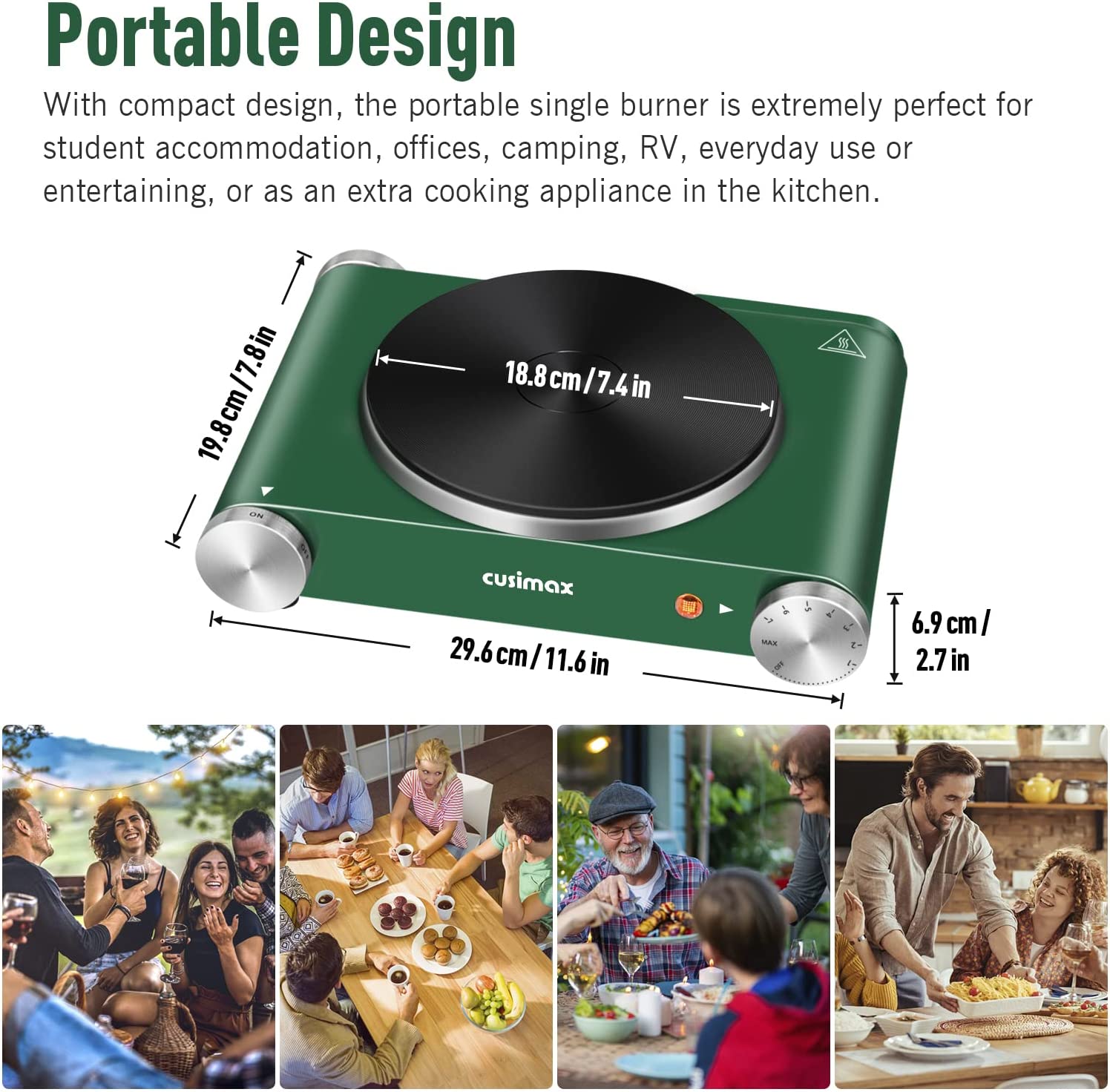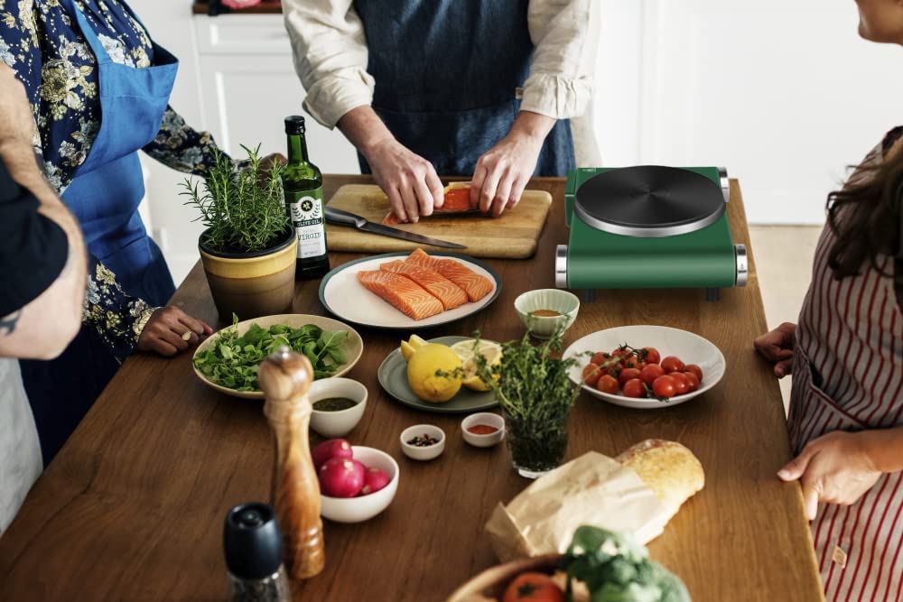 Cusimax Hot Plate Electric Burner. Single Burner Cast Iron hot plates. Portable Burner. Control Stainless Steel Non-Slip. Upgraded Version (Green)