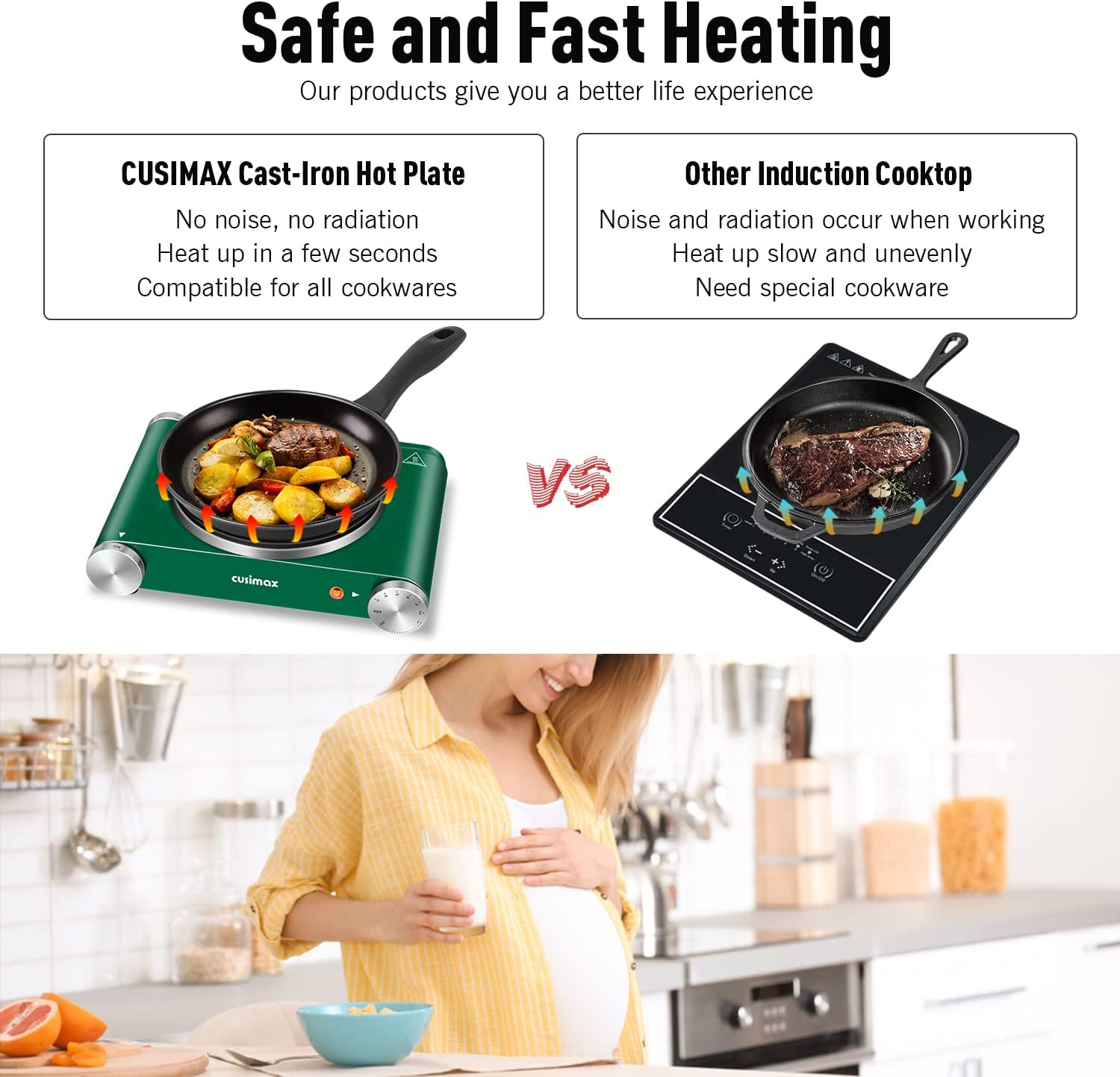 Cusimax Hot Plate Electric Burner. Non-Slip Rubber Feet. Upgraded Version. 1500W