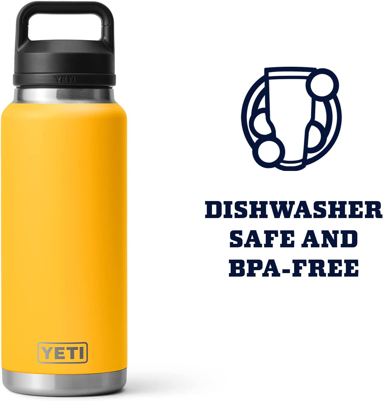 YETI Rambler 36 oz Bottle. Vacuum Insulated. Stainless Steel with Chug Cap. Alpine Yellow