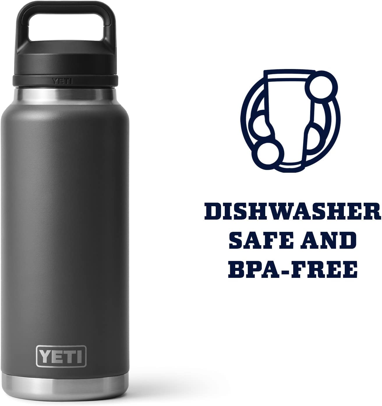 YETI Rambler 36 oz Bottle. Vacuum Insulated. Stainless Steel with Chug Cap. Charcoal